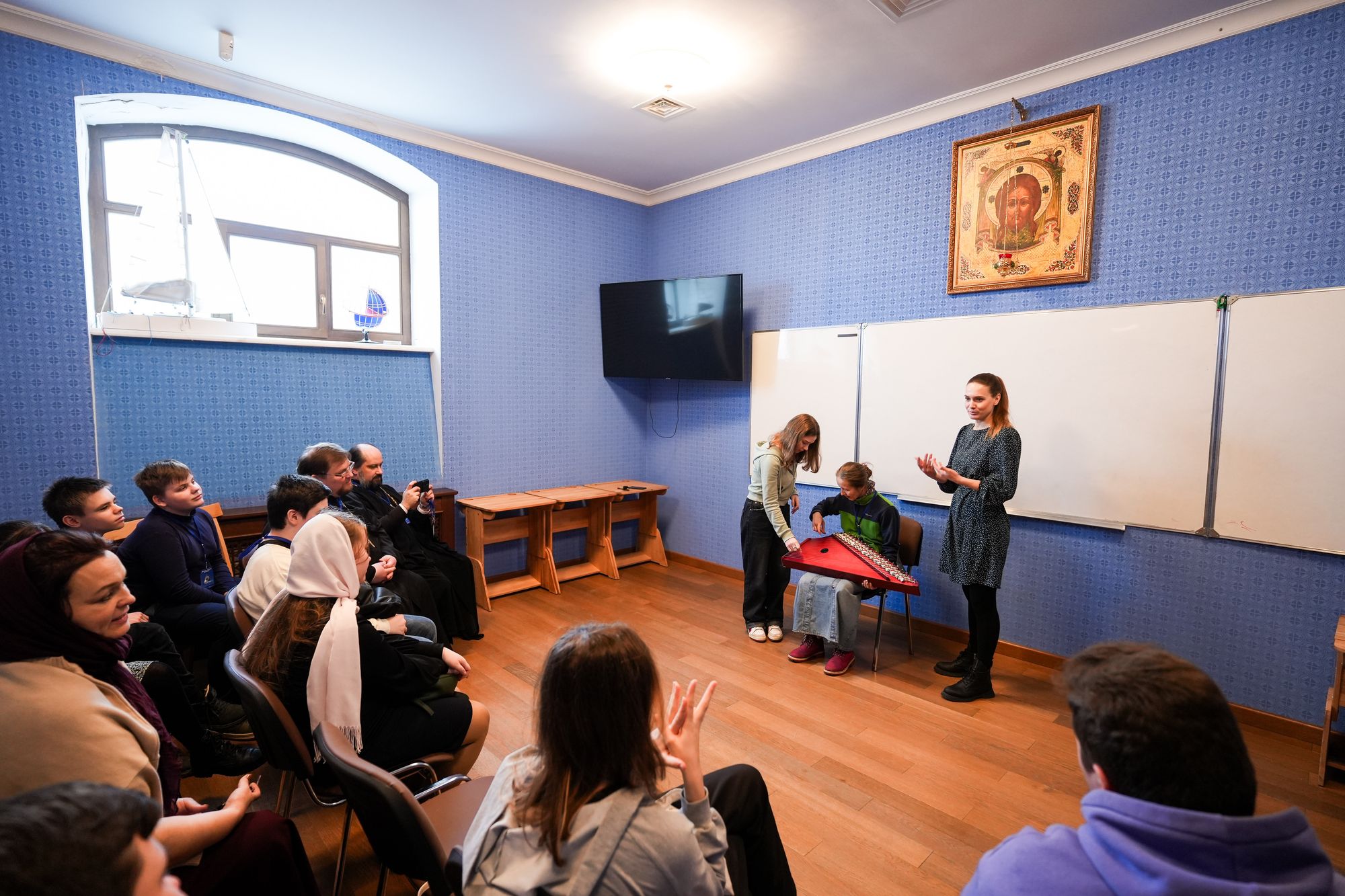 По окончании богослужения для всех участников мероприятия были организованы мастер-классы по следующим направлениям: «православная арт-студия», «церковно-хоровое пение», «русские народные инструменты» и «православный кинематограф».