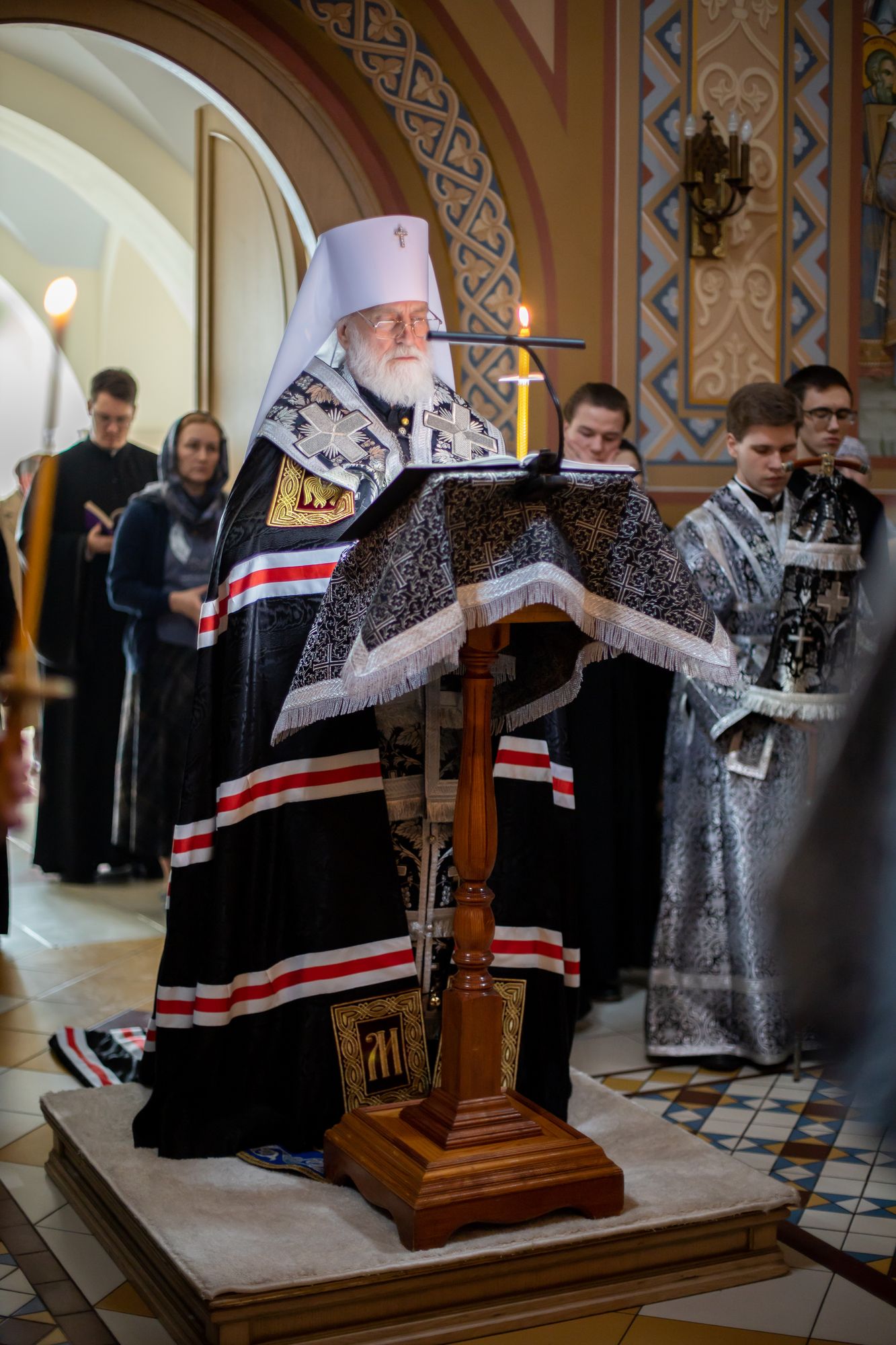 19 марта 2024 года, во вторник первой седмицы Великого поста, митрополит Крутицкий и Коломенский Павел совершил чтение второй части Великого покаянного канона преподобного Андрея Критского на Великом повечерии в Трёхсвятительском храме Коломенской духовной семинарии.