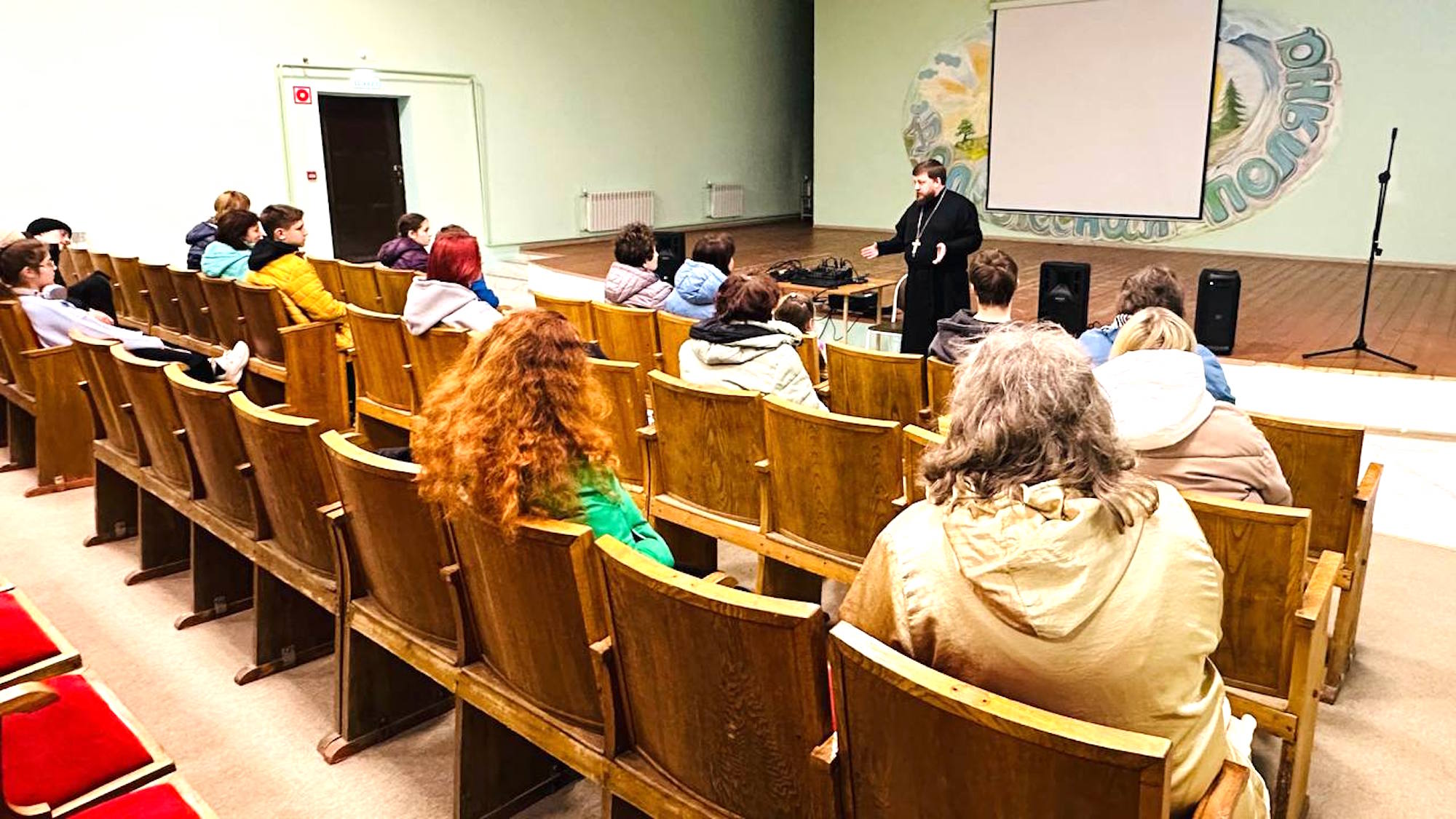 В ходе посещения отец Георгий познакомился с беженцами из приграничных районов Белгородской области и провел с ними беседу о молитве.