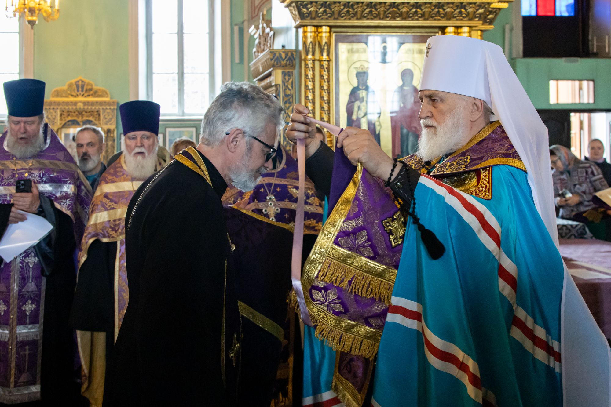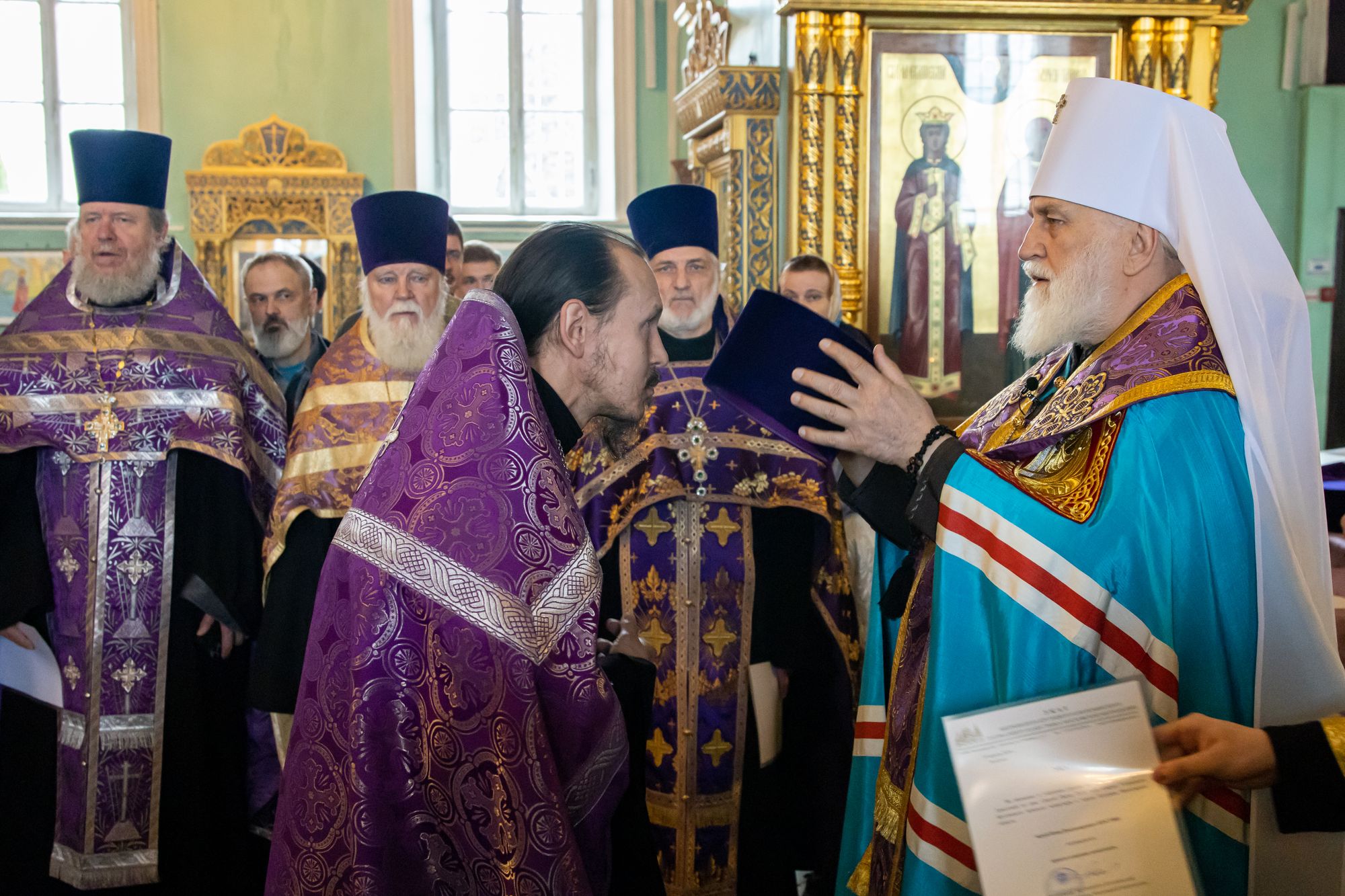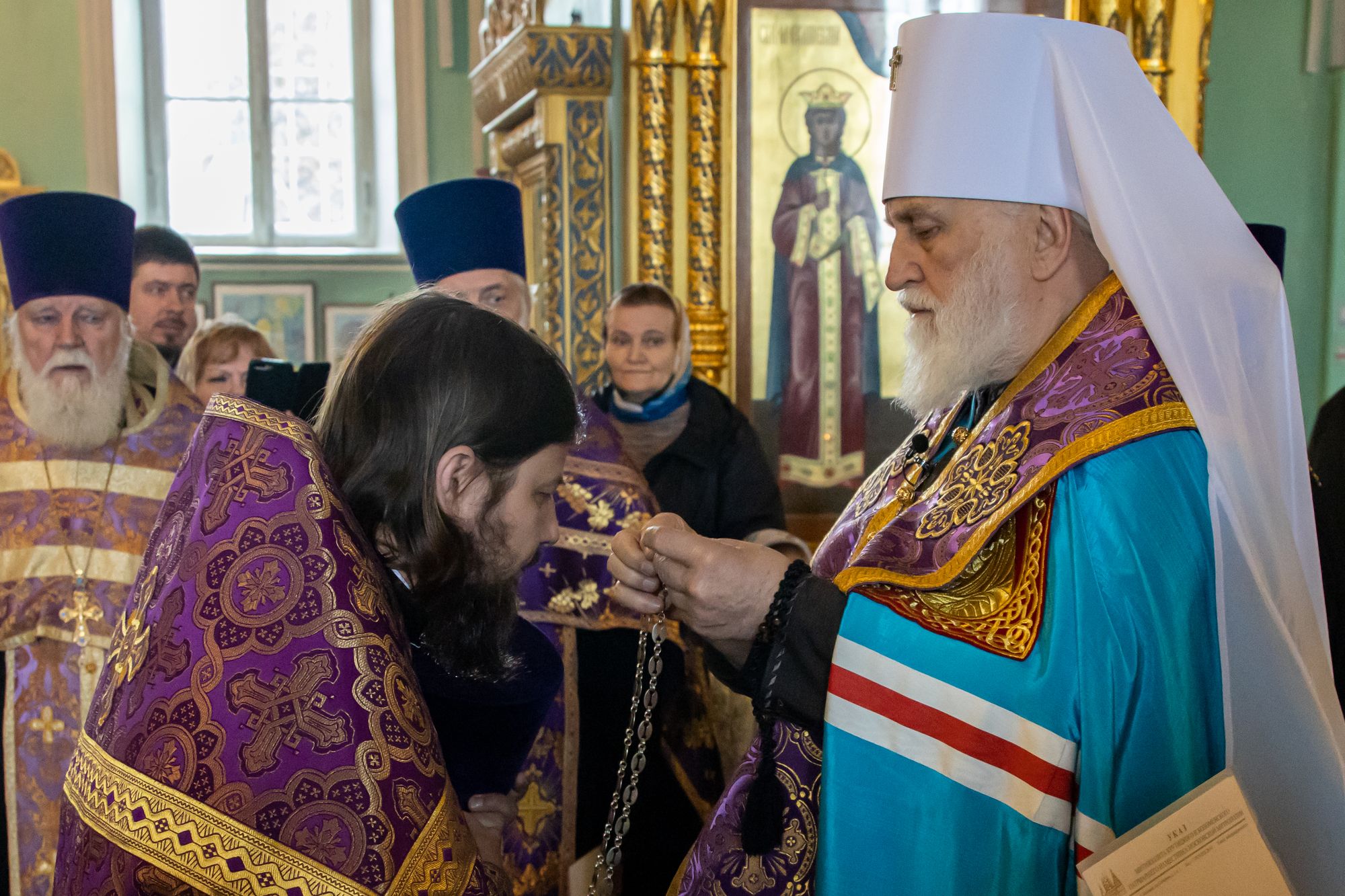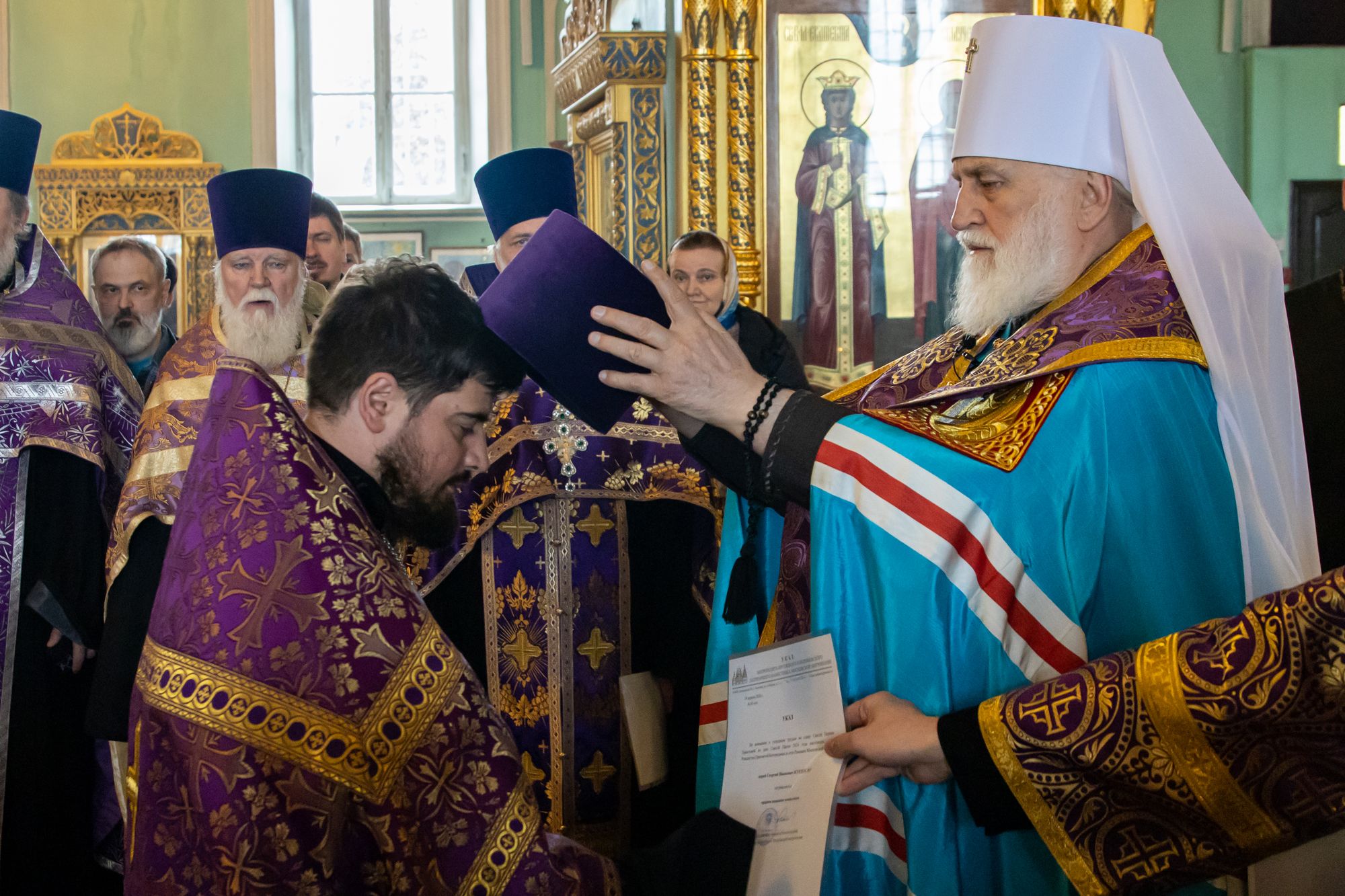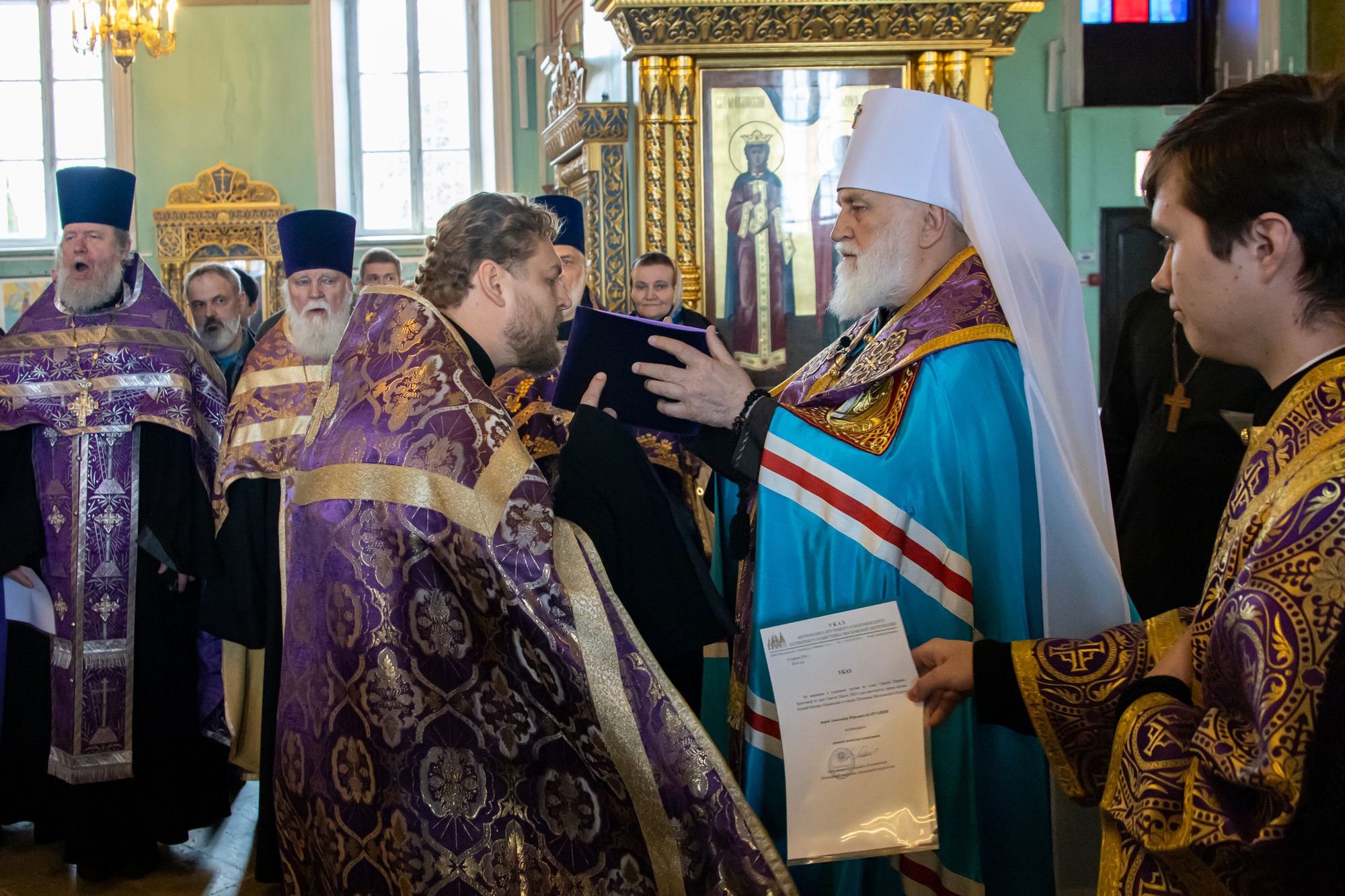 19 апреля 2024 года в Тихвинском храме Успенского кафедрального собора города Коломны митрополит Крутицкий и Коломенский Павел вручил патриаршие и архиерейские богослужебно-иерархические награды клирикам Коломенской епархии.