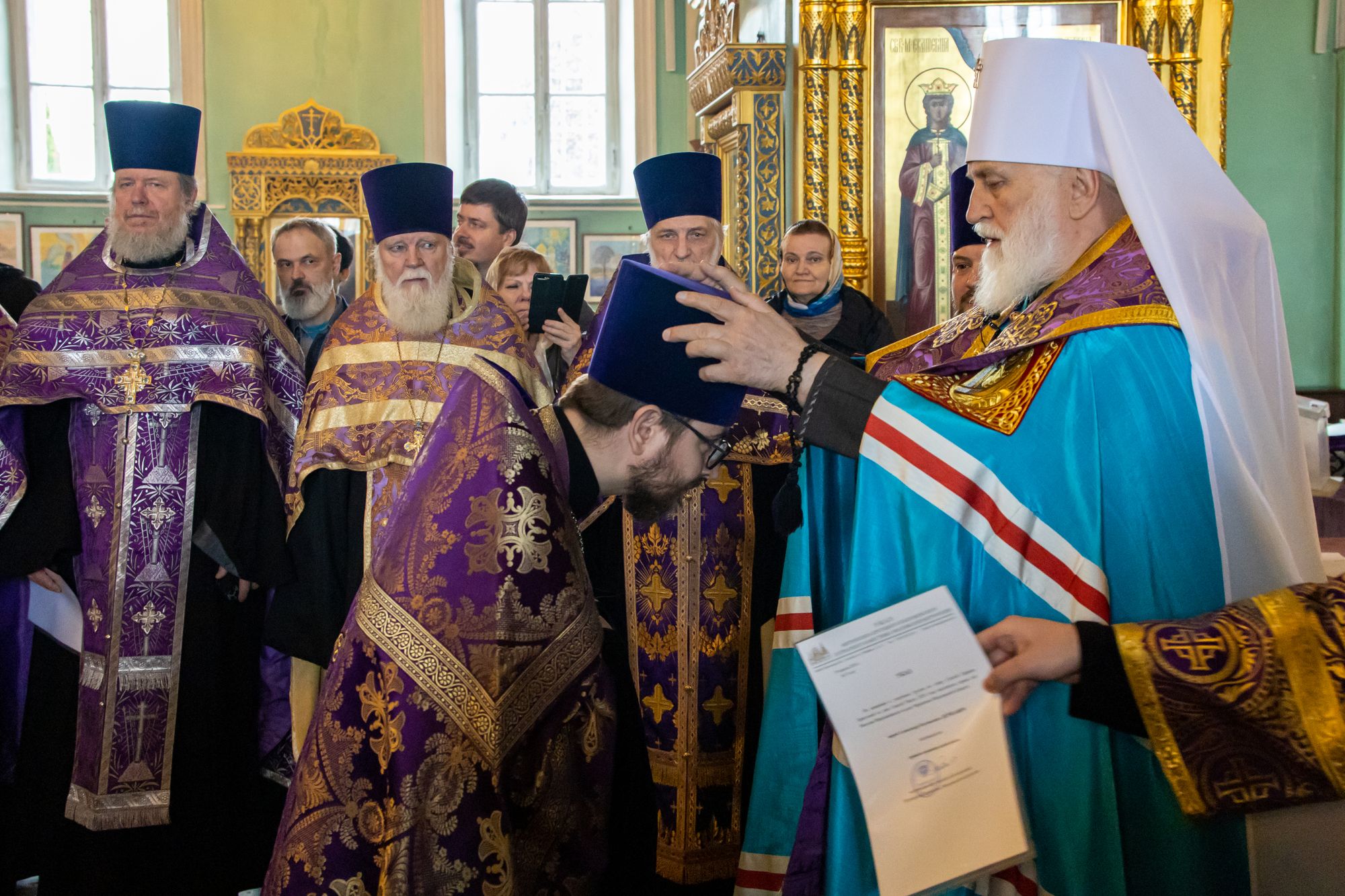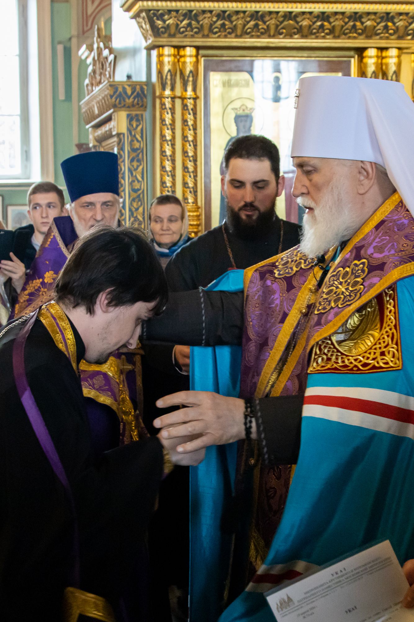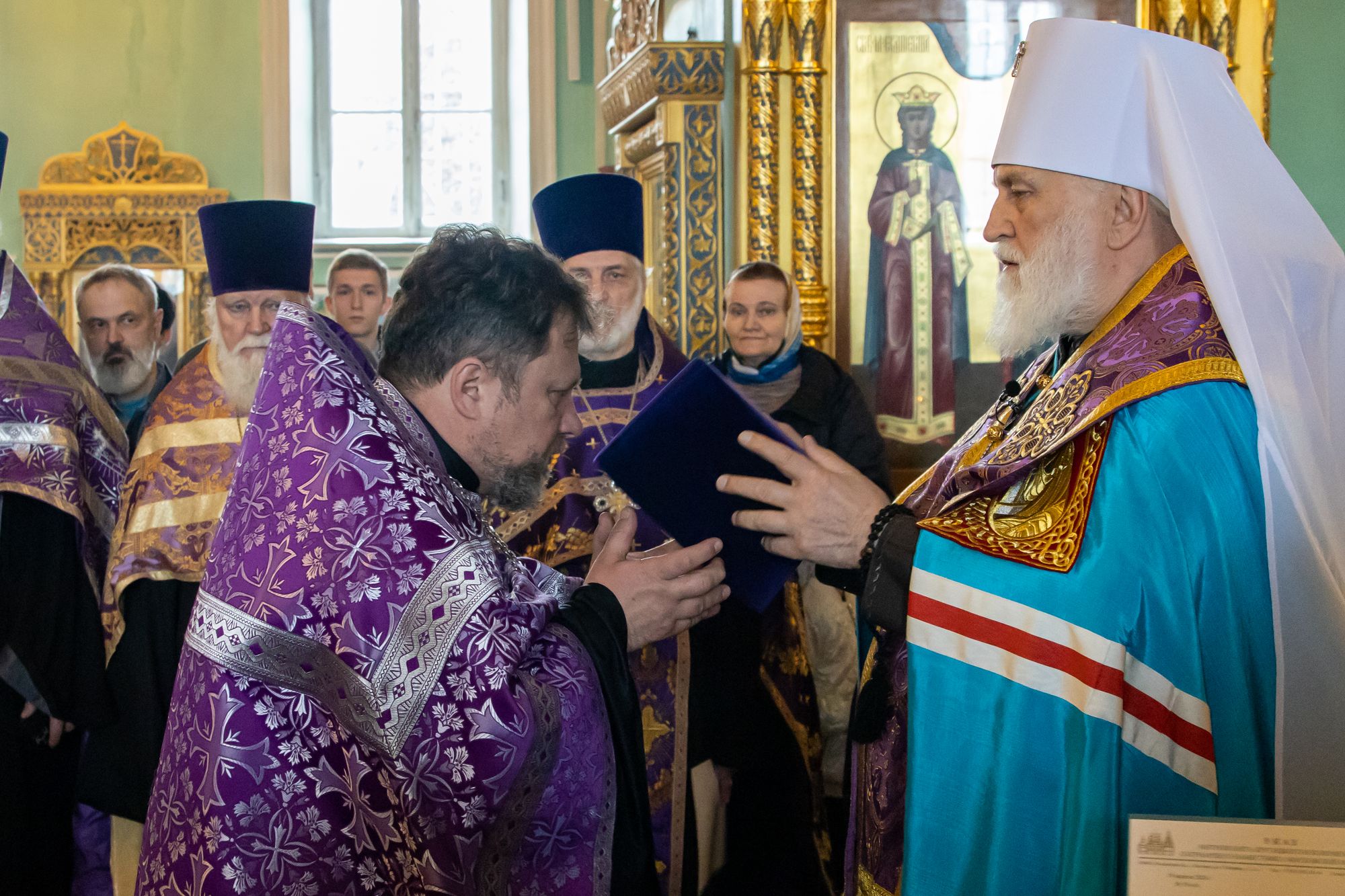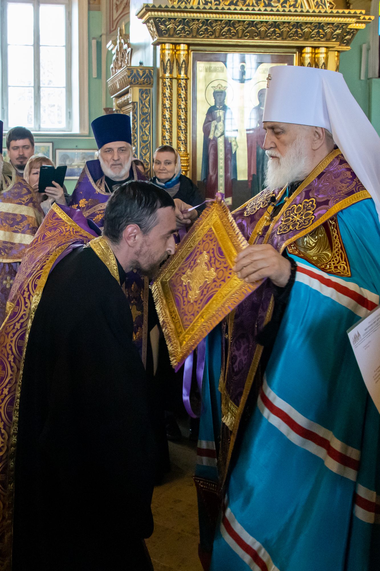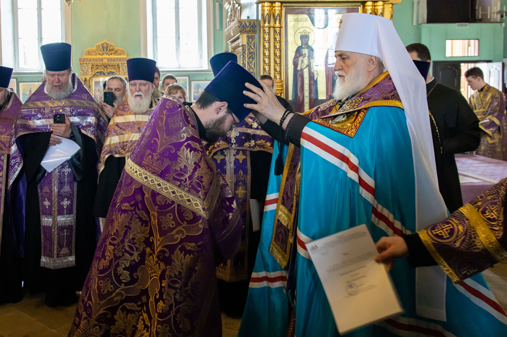 19 апреля 2024 года в Тихвинском храме Успенского кафедрального собора города Коломны митрополит Крутицкий и Коломенский Павел вручил патриаршие и архиерейские богослужебно-иерархические награды клирикам Коломенской епархии.