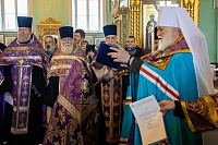 В завершение Владыка поздравил всех награждённых и призвал их продолжать ревностно нести своё служение во славу Божию, во славу Церкви Христовой, на радость людям и во спасение своей души.