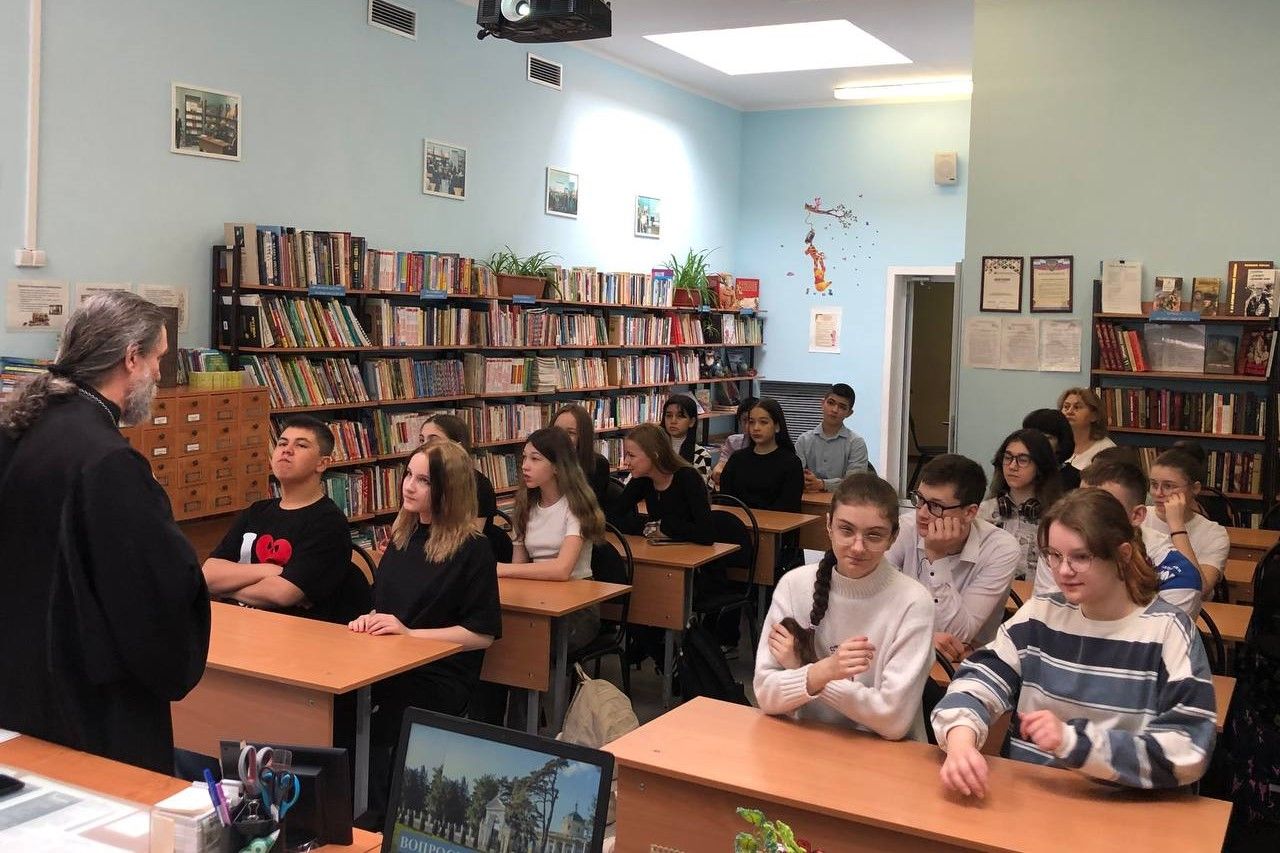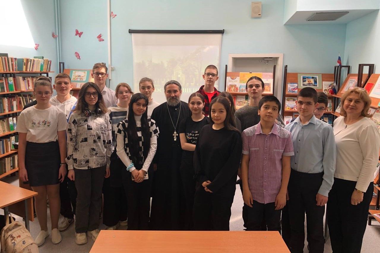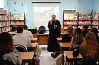 19 апреля в рамках проекта «Задай вопрос священнику» в средней школе №2 посёлка Свердловский прошла встреча учащихся 7-х классов с настоятелем храма «Неупиваемая Чаша» деревни Мизиново священником Валерием Очеретним.