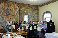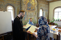 В этом году 20 человек получили епархиальные свидетельства об успешном окончании курсов. Заведующий Долгопрудненским отделением курсов иерей Димитрий Румянцев обратился к выпускникам со словам приветствия.