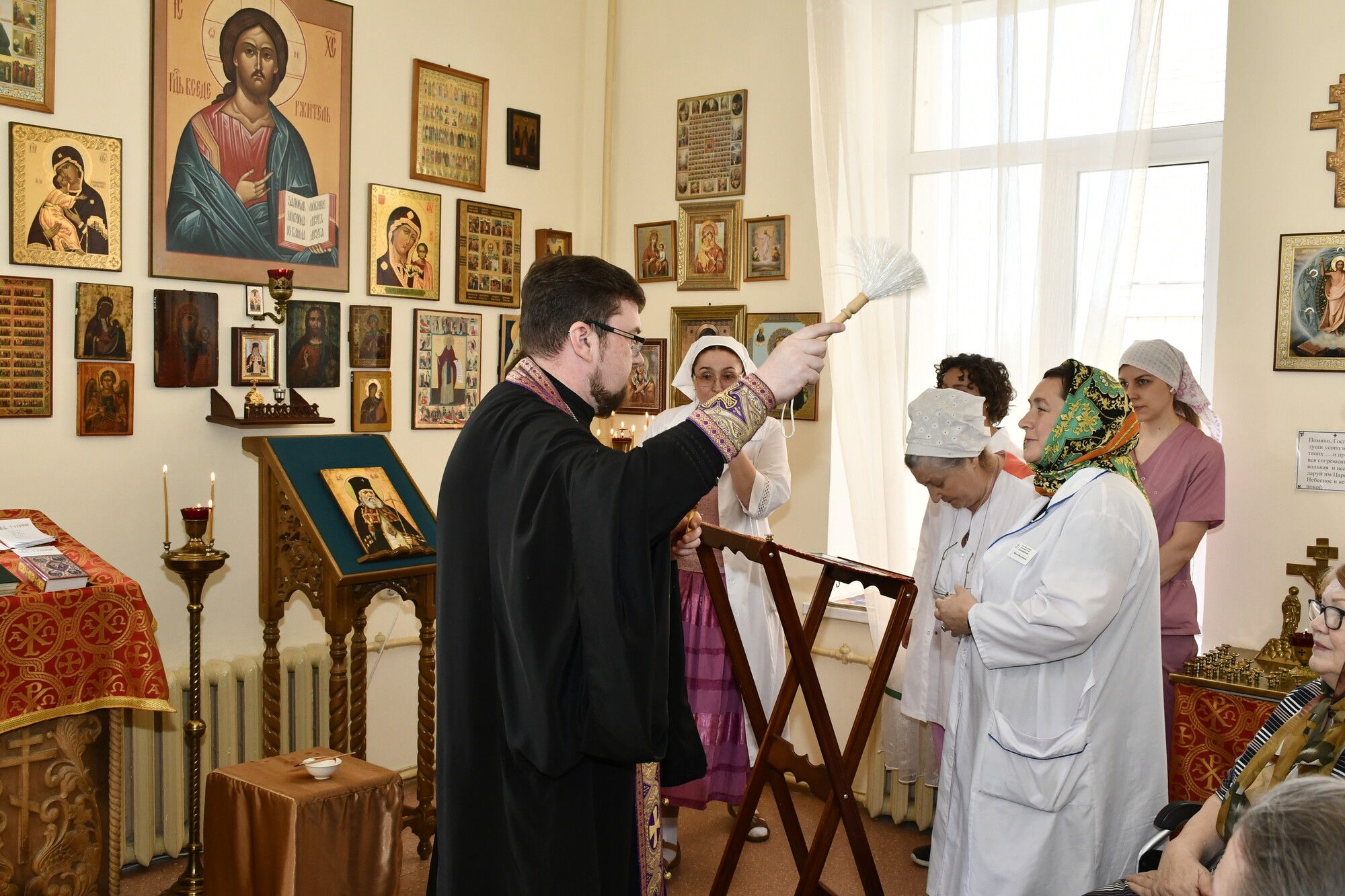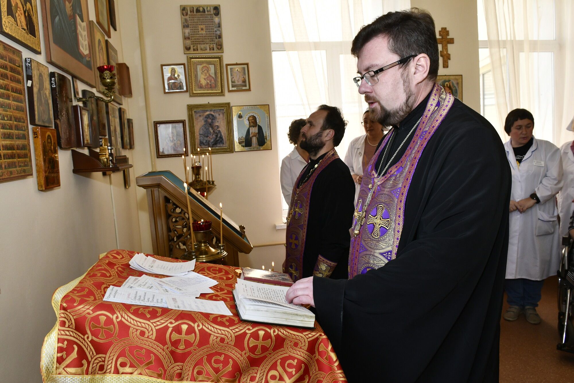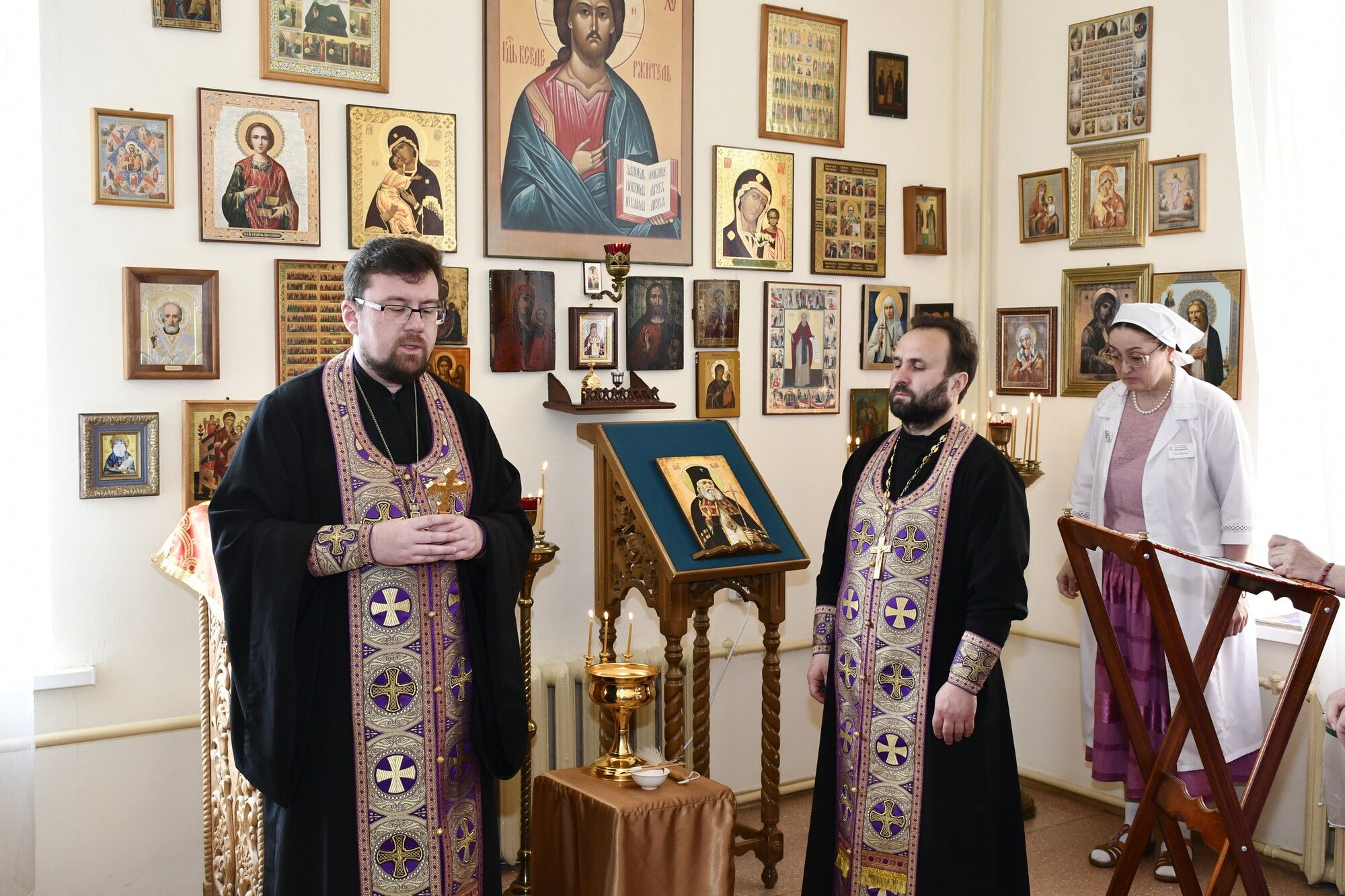 23 апреля в молельной комнате при Долгопрудненской центральной городской больнице состоялось очередное таинство Соборования. Его совершили помощник председателя Отдела по работе с медицинскими учреждениями Сергиево-Посадской епархии настоятель Георгиевского храма г. Долгопрудного протоиерей Александр Суворкин и клирик храма иерей Александр Маслий.