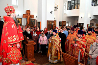 7 мая, во вторник Светлой седмицы, епископ Сергиево-Посадский и Дмитровский Кирилл совершил Божественную литургию в Преображенском храме г. Долгопрудного.