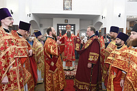 Его Преосвященству сослужило духовенство Долгопрудненского церковного округа.