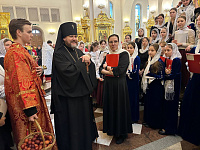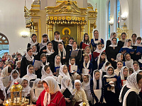 За Литургией пели: хор священнослужителей и матушек, а также детский епархиальный хор.