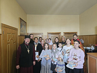 7 мая 2024 года, на Светлой седмице, клирик Богоявленского храма деревни Бородино священник Леонид Демаков и преподаватель воскресной школы Калгудина О. А. посетили детский сад №866 «Семицветик» и поздравили детей и воспитателей с Пасхой Христовой.