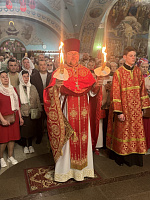 В праздник Светлого Христова Воскресения секретарь Сергиево‑Посадской епархии, благочинный храмов Мытищинского округа протоиерей Димитрий Оловянников совершил Пасхальную заутреню и Божественную Литургию во Владимирском храме города Мытищи. Благочинному сослужило духовенство храма. За богослужением молились представители администрации городского округа Мытищи, а также многочисленные прихожане. Святое Евангелие за Литургией в этот день читалось на церковнославянском, греческом, латинском, древнееврейском, английском, немецком, сербском, сирийском, украинском и молдавском языках. За богослужением благочинным были возжены свечи от Благодатного огня, принесенного из Храма Воскресения Христова Святого Града Иерусалима, и переданы участникам Пасхального богослужения. По окончании Божественной Литургии были зачитаны Пасхальные послания Предстоятеля Русской Православной Церкви – Святейшего Патриарха Кирилла и правящего архиерея – епископа Сергиево‑Посадского и Дмитровского Кирилла. Отец благочинный в этот день поздравил и преподнес Пасхальные подарки многочисленным алтарникам храма, детско‑юношескому хору, участникам приходского молодежного движения «NIKA», а также учащимся и преподавателям воскресной школы. В день прославления Пасхи Христовой воскресная школа Владимирского храма подготовила два Пасхальных спектакля: «Когда наступит Пасха» и «Сказка про Ивана Царевича и хорошее воспитание», зрителями которых стали прихожане храма, а также гости из социальных учреждений городского округа Мытищи.