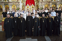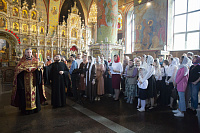 Молебен совершил председатель Епархиального отдела по делам молодёжи священник Димитрий Филин в сослужении духовенства епархии. Регентом народного молодёжного хора стал клирик собора диакон Роман Галиев.