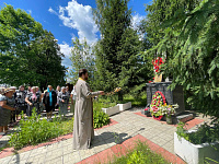 22 июня настоятель Крестовоздвиженского храма города Коломны священник Димитрий Медведев совершил заупокойную литию у воинского мемориала села Дмитровцы.