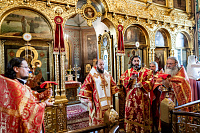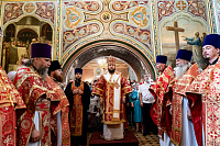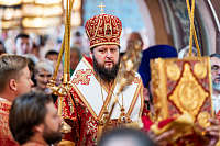 После Божественной литургии был совершён крестный ход. Затем архиепископ Аксий обратился к духовенству и прихожанам с архипастырским словом.
