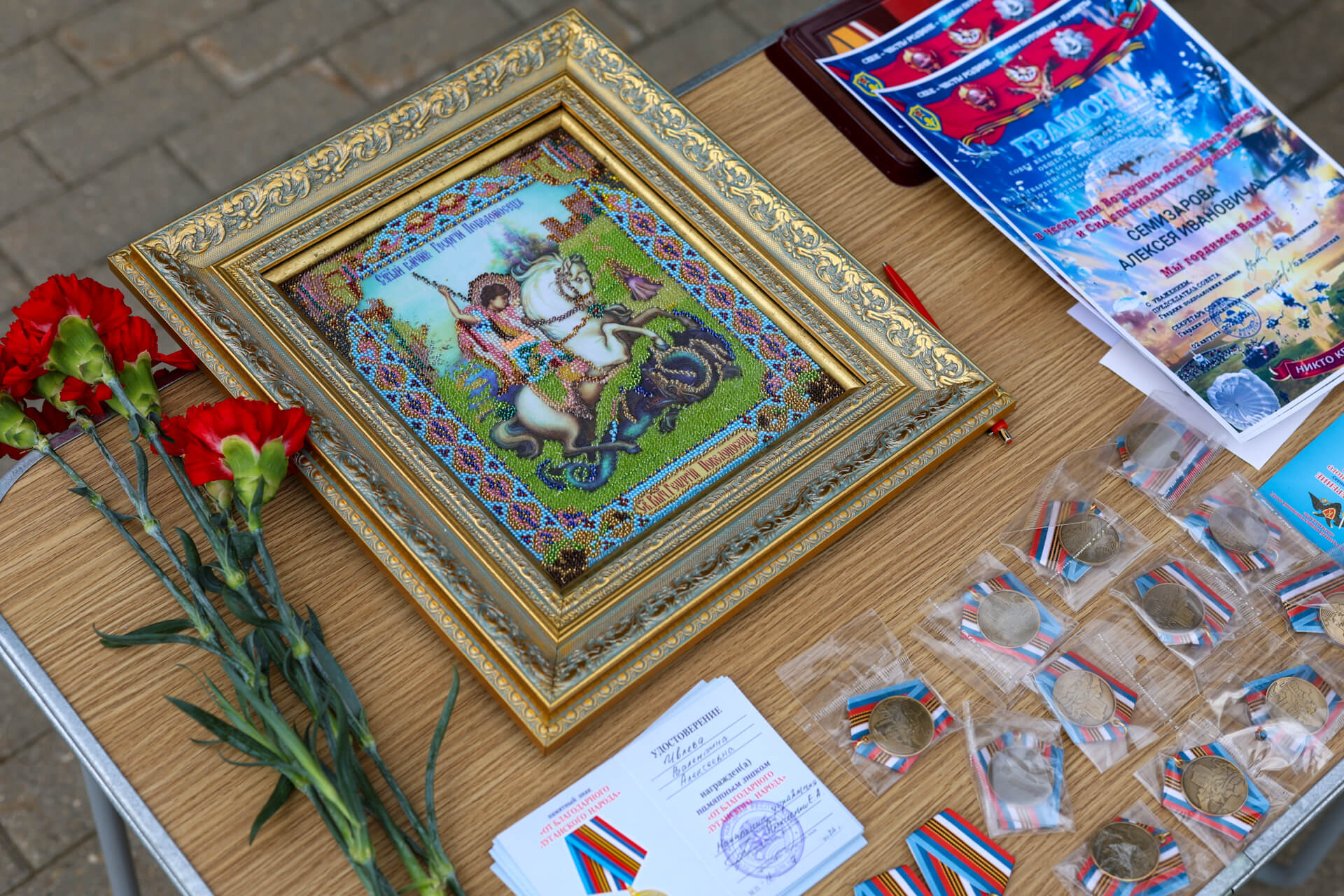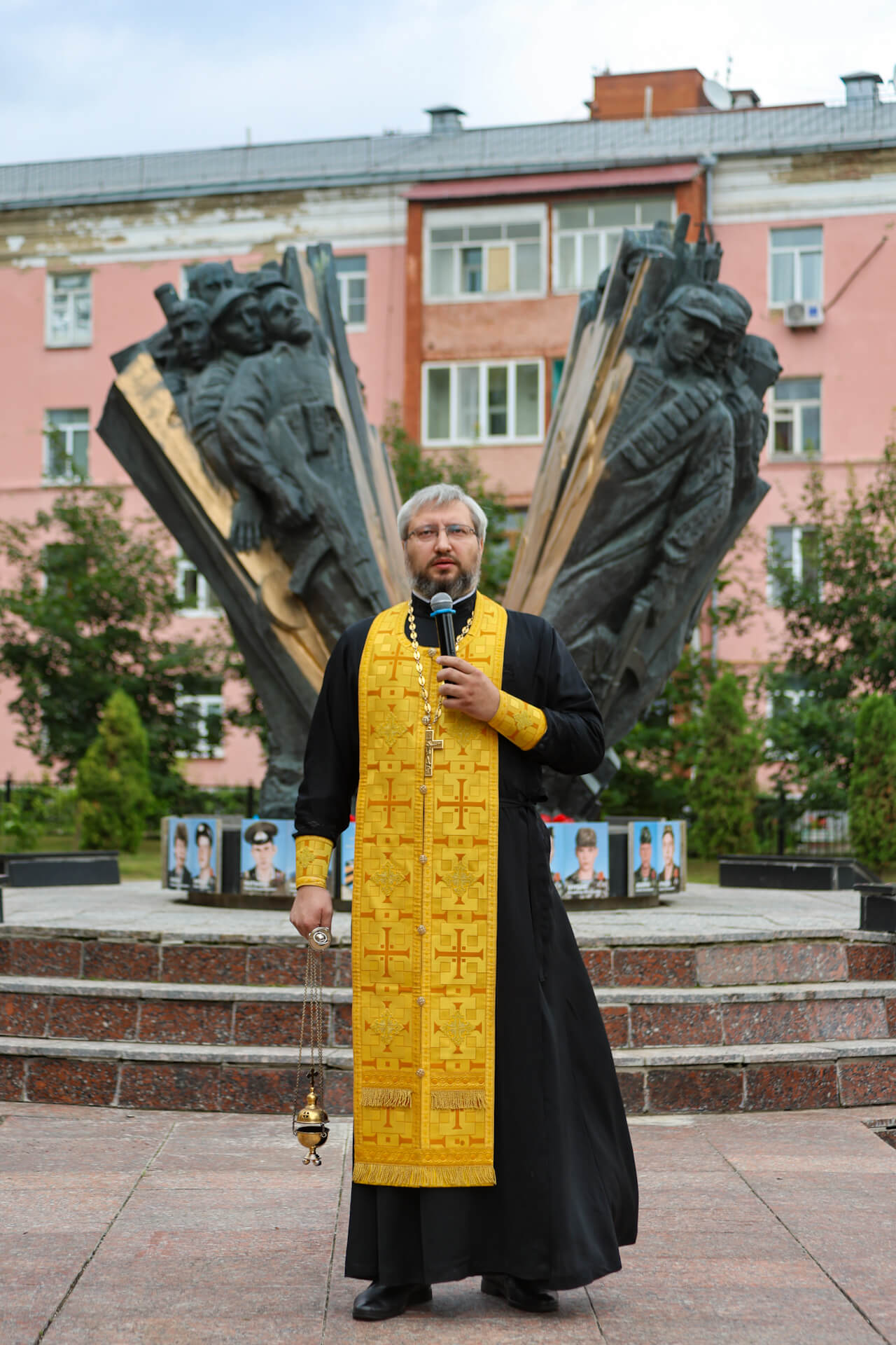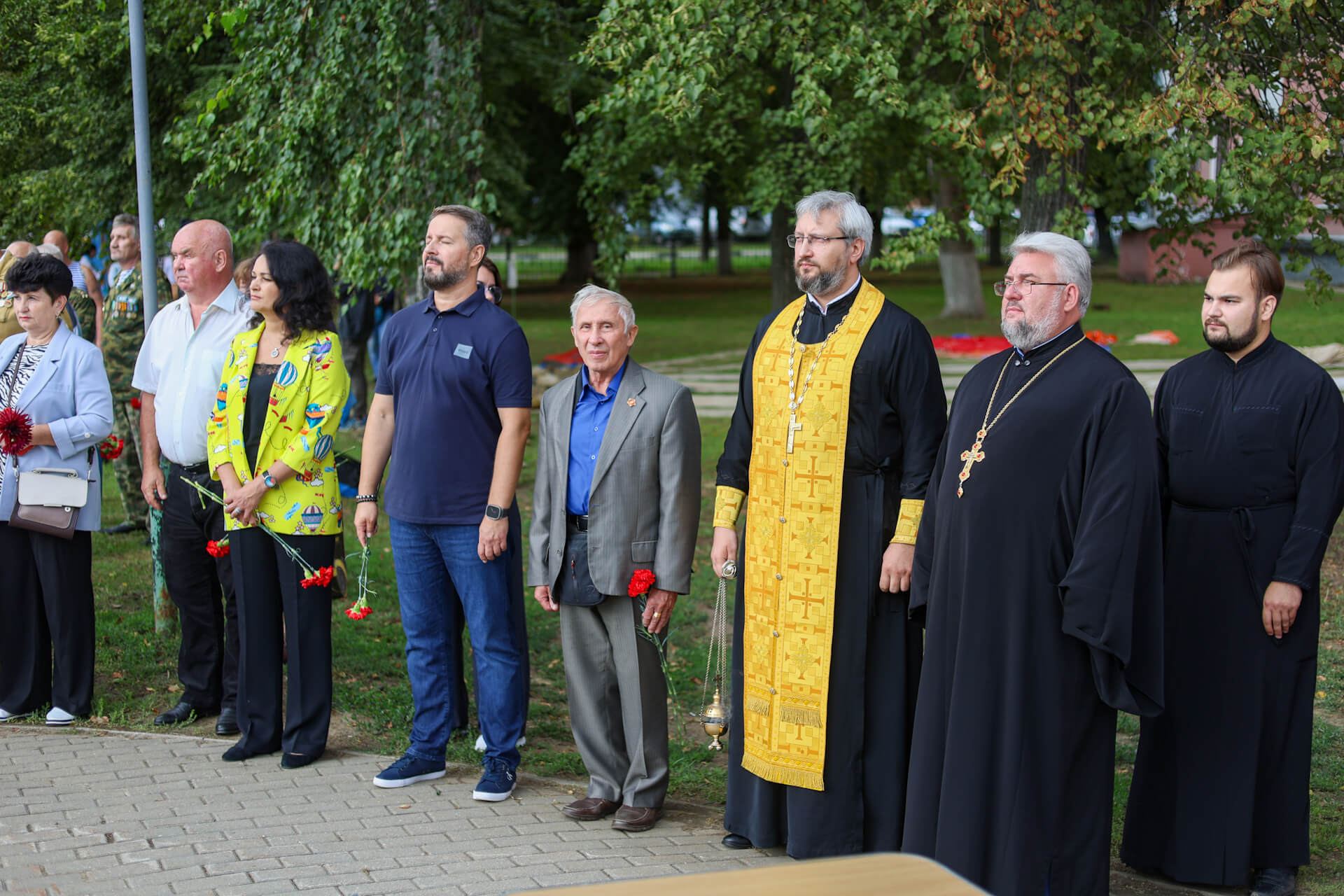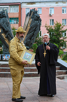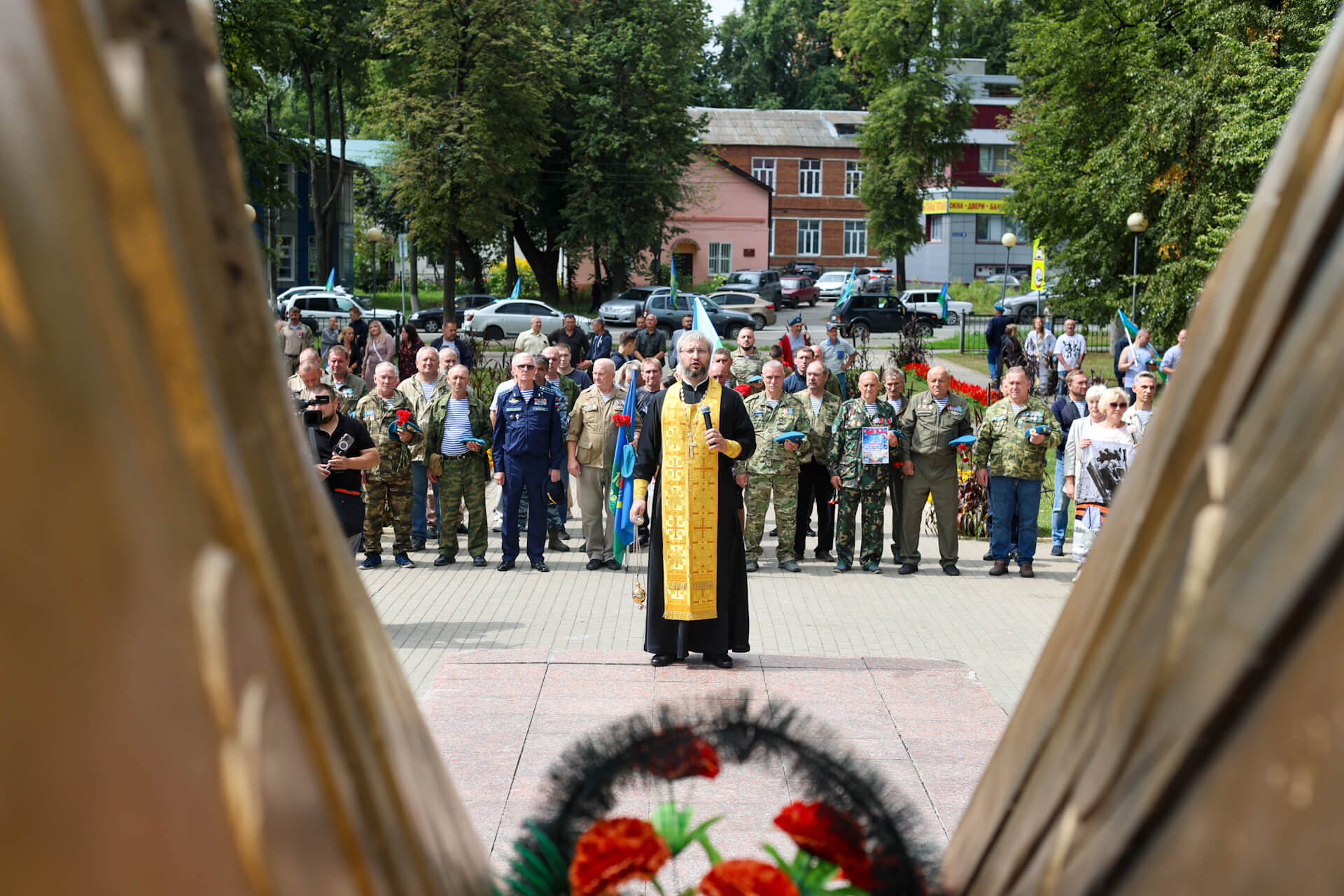 Председатель Отдела по взаимодействию с Вооруженными силами правоохранительными органами и казачеством Коломенской епархии протоиерей Сергий Рыбаков поздравил собравшихся с праздником святого пророка Илии, небесного покровителя воздушно-десантных войск и передал ВООВ «Боевое братство» в дар от жителей д. Медведево икону великомученика Георгия Победоносца, ответственный за взаимодействие с Вооруженными силами и правоохранительными органами в 1-м и 2-м Воскресенских благочиннических округах иерей Евгений Доля отслужил литию по павшим воинам.