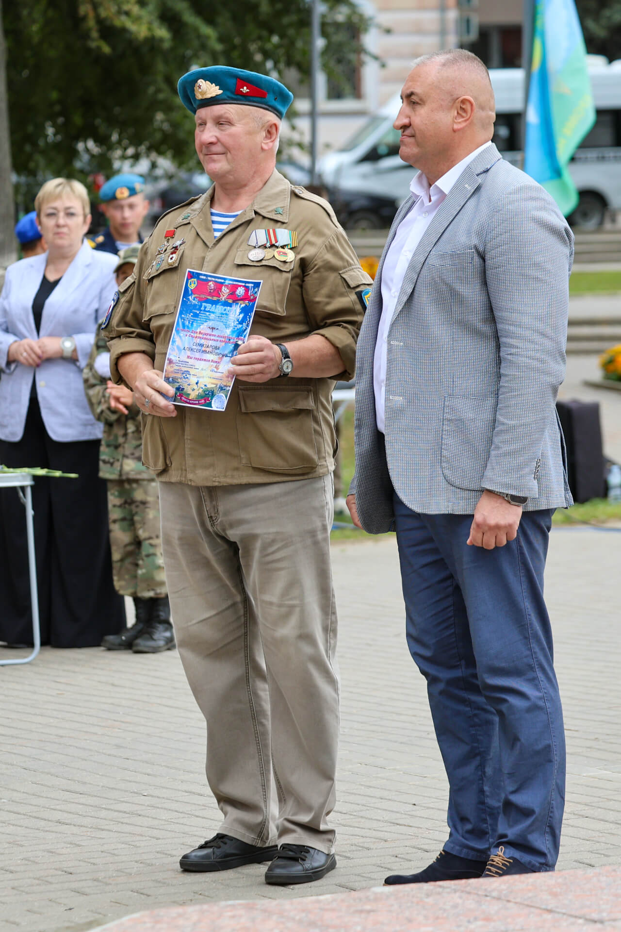 Со словами приветствия к присутствующим обратились председатель Совета депутатов г. о. Воскресенск Сергей Васильевич Матвиенко, председатель правления воскресенского отделения ВООВ «Боевое братство» Юрий Фёдорович Слепцов, председатель правления ВО «Союз десантников» Андрей Викторович Краснов и ветеран ВДВ и войск спецназа ГРУ, гвардии старший прапорщик Владимир Иванович Черкашин. Наградами были отмечены ветераны локальных воин и волонтеры.
