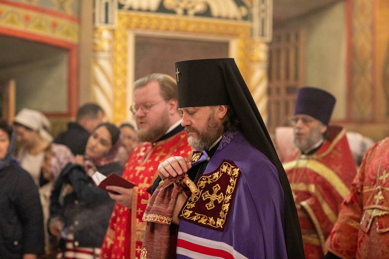 После литургии состоялся Крестный ход. По окончании богослужения Архиепископ Фома обратился к молящимся с архипастырским словом.
