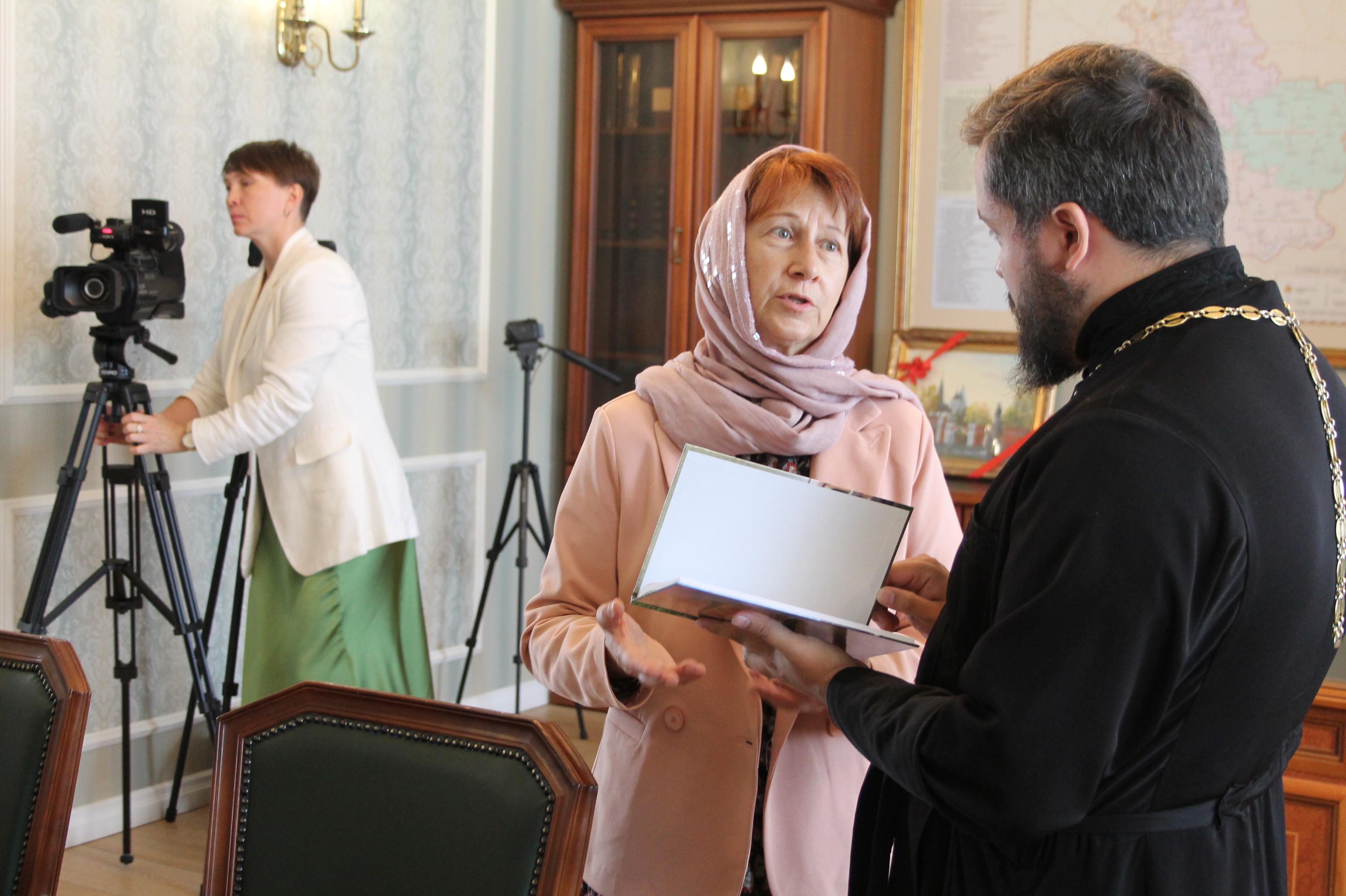 Гости привезли в подарок архиепископу Аксию печатные издания, подготовленные православными журналистами в разные годы, а владыка подарил им издания Спасо-Преображенского Соловецкого монастыря, рассказывающие об истории соловецкой обители.