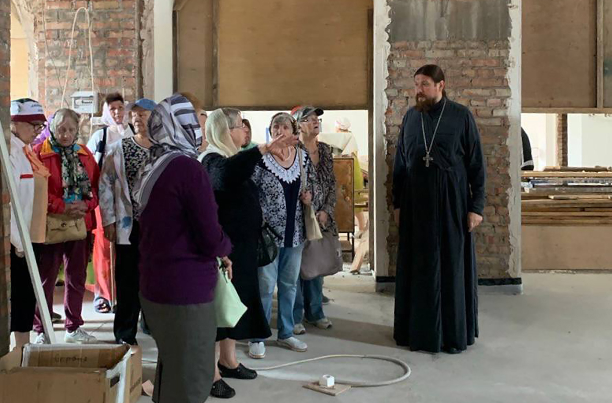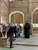 В ходе встречи настоятель храма иерей Алексий Барашков провел экскурсию по строящемуся храму Новомучеников Ивантеевских на территории прихода Георгиевского храма.