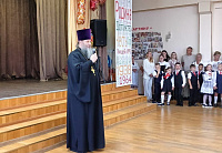 Священники Зарайского благочиния посетили праздничные мероприятия: Благочинный церквей Зарайского округа протоиерей Пётр Спиридонов – МБОУ «Средняя школа №1 им. В. Н. Леонова» (основное здание) и МБОУ «Гимназия №2» (основное здание); заместитель благочинного, настоятель Успенского храма деревни Рожново протоиерей Михаил Сокрутов – МБОУ «Средняя школа №6» (здание в д. Авдеево) и МБОУ «Мендюкинская средняя школа» (здание в с.Чулки-Соколово); настоятель Преображенского храма д. Журавна протоиерей Григорий Решетов МБОУ «Мендюкинская средняя школа» (здание в д. Журавна) и МБОУ «Мендюкинская средняя школа» (здание в п. ЦУ с. «40лет Октября»); настоятель Благовещенского храма иерей Дионисий Утенков – МБОУ «Лицей №5» (основное здание); настоятель Одигитриевского храма деревни Чернево иерей Роман Куделин – МБОУ «Мендюкинская средняя школа» (основное здание) и МБОУ «Мендюкинская средняя школа» (основное здание); настоятель Ильинского храма города Зарайска протоиерей Сергий Куделин – МБОУ «Гимназия №2» (здание в п. Зарайский); настоятель Спасского храма деревни Ильицино иерей Кирилл Романов – МБОУ «Лицей №5» (здание в д. Ерново) и МБОУ «Лицей №5» (здание в п. Масловский); клирик Успенского храма д. Рожново иерей Максим Прудников МБОУ «Гимназия №2» (здание в с. Макеево) и обратились с напутственными словами и благословением педагогам, учащимся и родителям. Поздравив всех с праздником, священники пожелали детям отличных отметок и хорошего поведения, педагогам помощи Божьей в их трудах по обучению и воспитанию подрастающего поколения, родителям — мудрости в воспитании детей.