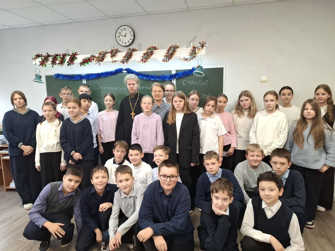 13 сентября настоятель Георгиевского храма с. Ванилово протоиерей Николай Зверев провел беседу с учениками 6-х классов СОШ № 13 пос. им. Цюрупы о духовном значении воздержания.