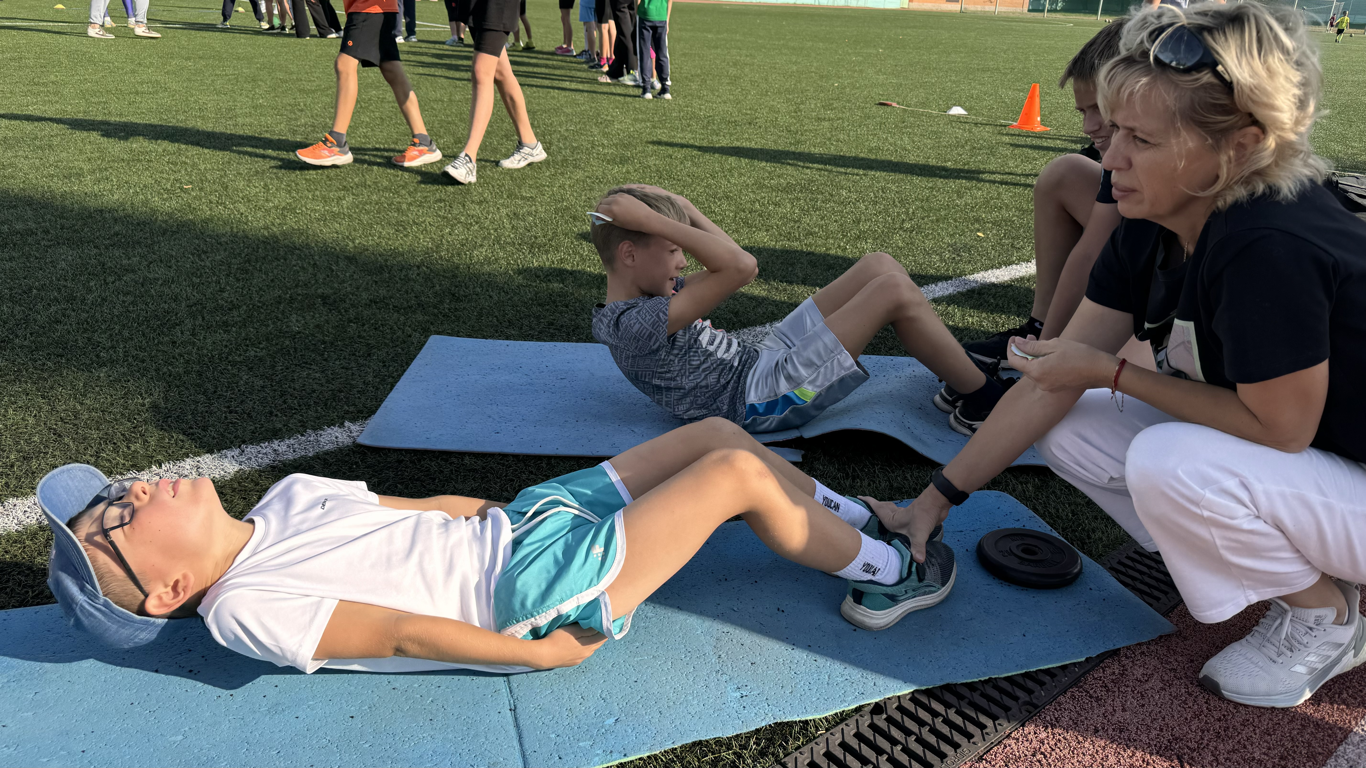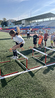 Ребята пробовали свои силы в прыжках в длину, бросании колец на меткость, отжимании, подтягивании, футбольных и баскетбольных приёмах.
