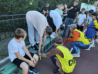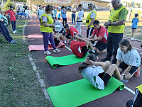 Спортивная программа представлена следующими тестами комплекса ГТО: бег на короткую дистанцию, наклон вперёд из положения стоя с прямыми ногами на гимнастической скамье, поднимание туловища из положения лёжа на спине. Во время подведения итогов мероприятия была проведена встречная эстафета.