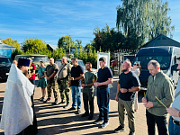Отец Александр благословил собравшихся и пожелал им Божией помощи. При отправке присутствовали первый заместитель главы Павлово-Посадского городского округа Ф. А. Ефанов и председатель совета депутатов Р. И. Тикунов.