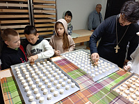 В просфорне для гостей был проведён мастер-класс. Вместе с помощниками отец Василий поведал ребятам об истории и видах просфоры и наглядно продемонстрировал весь процесс изготовления этих святых хлебов.