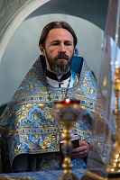 Затем в кафедральном соборе иерей Андрей Згонников в сослужении отцов благочинных 1-го, 2-го и 3-го Коломенских округов протоиерея Алексия Виноградова, протоиерея Георгия Муравлёва и иерея Александра Сирина, а также сопровождающего святыню иерея Константина Быкова возглавил Божественную литургию и краткий молебен.