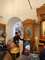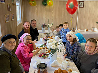 Игумен монастыря Иоанн (Железов) приветствовал гостей и провел им экскурсию по обители. Общение продолжилось в новом помещении монастырской Воскресной школы за чаем и пирогами. В завершение встречи отец Иоанн вручил юным прихожанам памятные и сладкие подарки.