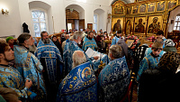 20 октября, в Неделю 17-ю по Пятидесятнице, в Успенском кафедральном соборе г. Сергиева Посада второй день пребывал московский список чудотворной иконы Божией Матери, именуемой «Казанская».