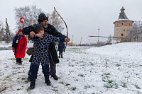 4 ноября в Зарайске была проведена муниципальная историческая игра «Под стягом Пожарского – 2024». Ее организаторами стали: отдел по миссионерской работе и делам молодежи Коломенской епархии; Управление образования администрации г.о. Зарайск и государственный музей-заповедник «Зарайский кремль». В игре приняли участие команды из общеобразовательных учреждений г.о. Зарайск и Луховицы. С особой радостью были встречены гости, нижегородская и рязанская команда - из городов Арзамаса и Михайлова. Приглашение ребят из этих двух городов связано с празднованием Дня народного единства 4 ноября и преодолением Смутного времени. Воины арзамасской и рязанской дружины положили головы в битве 1608 года у Зарайска. Об этом напоминает памятный Курган близ Благовещенского храма. Рассказать участникам игры о героическом прошлом Зарайска, о полководцах Смутного времени, научить навыкам владения старинным оружием - вот цели, поставленные организаторами патриотического мероприятия.