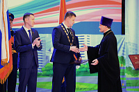 Прозвучал поздравительный Адрес от Губернатора Московской области Андрея Воробьева. Благочинный Долгопрудненского церковного округа протоиерей Андрей Хмызов огласил поздравительное слово Правящего архиерея Сергиево-Посадской епархии епископа Сергиево-Посадского и Дмитровского Кирилла.