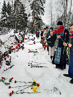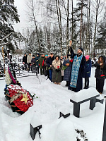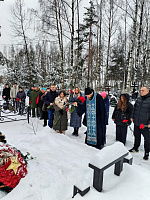 9 декабря на Долгопрудненском кладбище настоятель Покровского храма в мкр. Шереметьевский г. Долгопрудный иерей Николай Лузанов отслужил панихиду по воинам СВО на Аллее Героев.