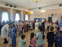 В Никольском храме по окончании богослужения прихожан поздравили дети воскресной школы Рождественскими песнопениями и сладкими подарками.