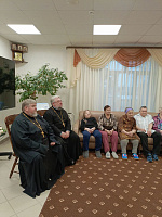 Отец Сергий и отец Николай поздравили проживающих и обслуживающий персонал с наступающим праздником Сретения Господня, пожелали всем здоровья, мира и благодати Божьей.