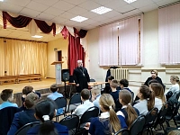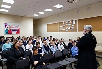 13 февраля благочинный 2-го воскресенского благочиннического округа протоиерей Сергий Рыбаков провел беседу в СОШ N99 села Конобеево. О. Сергий рассказал ученикам 5 и 6 классов о Боге и Его любви к людям, и ответил на вопросы ребят.