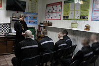 В сопровождении сотрудников изолятора священнослужитель встретился с заключенными, содержащимися в камерных помещениях учреждения. Далее отец Михаил провел беседу с осужденными отряда по хозяйственному обслуживанию на тему «Промысл Божий в жизни человека». Кроме того, председатель отдела ознакомился с условиями проведения в учреждении богослужений и встреч со священнослужителями, духовно окормляющими учреждение.