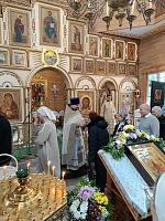 Также отец благочинный в этот день представил собравшимся нового настоятеля Донского храма города Мытищи протоиерея Артемия Литвинова. По окончании Литургии новоназначенный настоятель преподал Крест прихожанам храма.