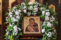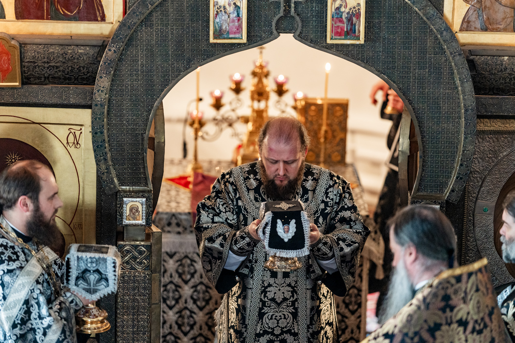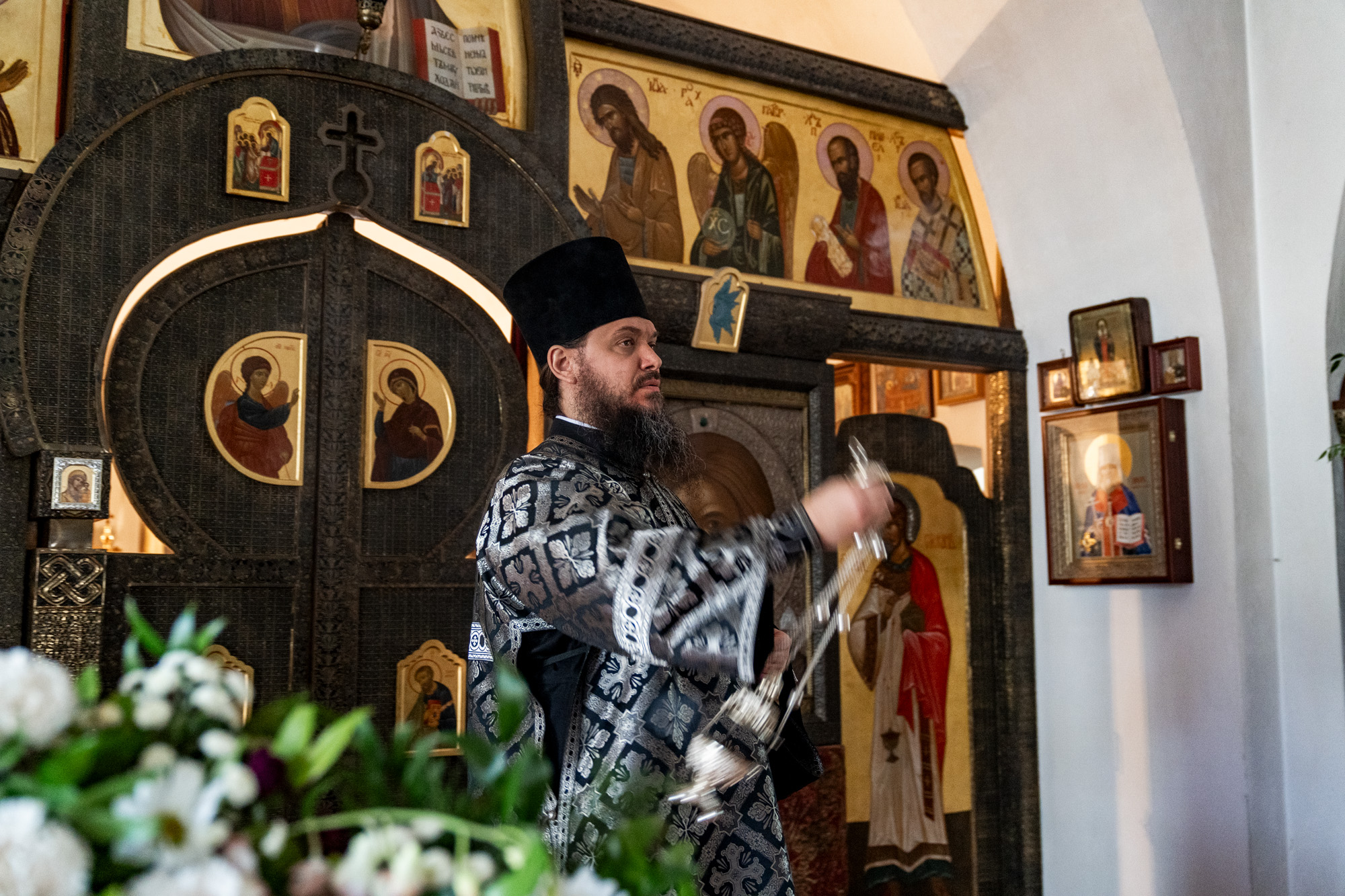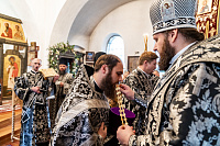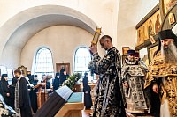 Его Высокопреосвященству сослужили благочинный монастырей Подольской епархии игумен Сергий (Куксов), старший священник Серафимо-Знаменского скита протоиерей Андрей Гусев, клирик Серафимо-Знаменского скита иерей Андрей Васильев, духовенство Подольской епархии.