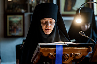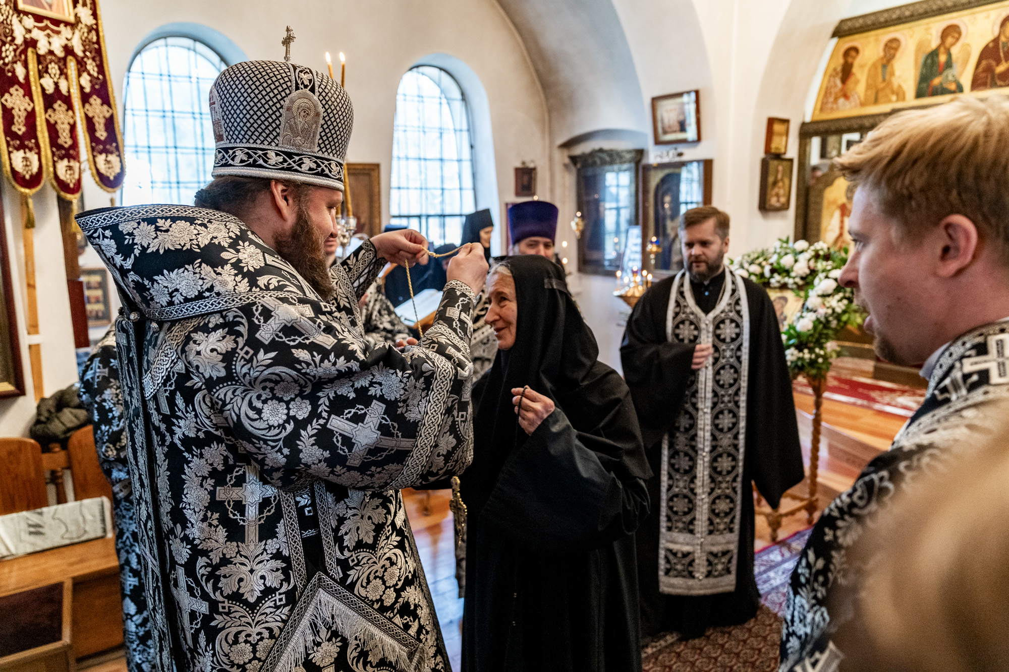На вечерне архиепископ Аксий вручил богослужебно-иерархические награды за усердное служение Церкви Христовой к празднику Пасхи. Права ношения наперсного креста с украшениями удостоена игумения Серафимо-Знаменского скита Иннокентия (Попова); права служения Божественной литургии с отверстыми Царскими вратами по «Иже Херувимы» удостоен старший священник Серафимо-Знаменского скита протоиерей Андрей Гусев; права ношения наперсного креста золотого цвета удостоен клирик Серафимо-Знаменского скита иерей Андрей (Васильев).