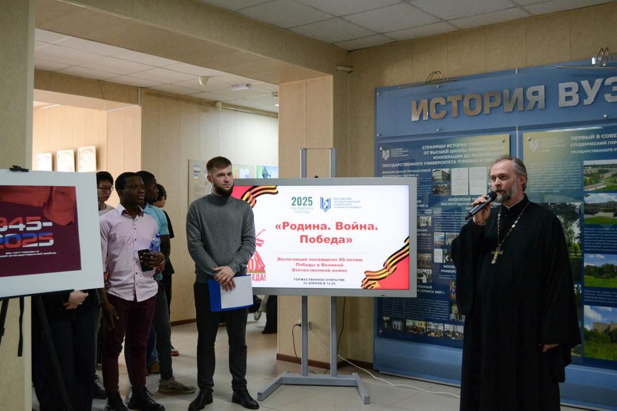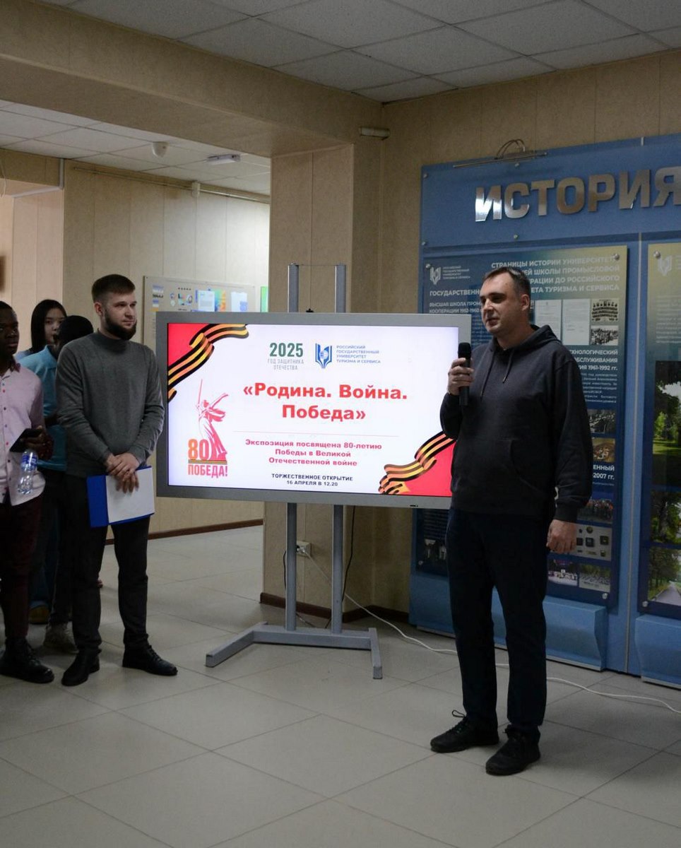 16 апреля 2025 года в Российском государственном университете туризма и сервиса в пос. Черкизово Пушкинского г.о. прошло открытие выставки студенческих работ, посвящённых 80-й годовщине Победы в Великой Отечественной войне.
