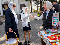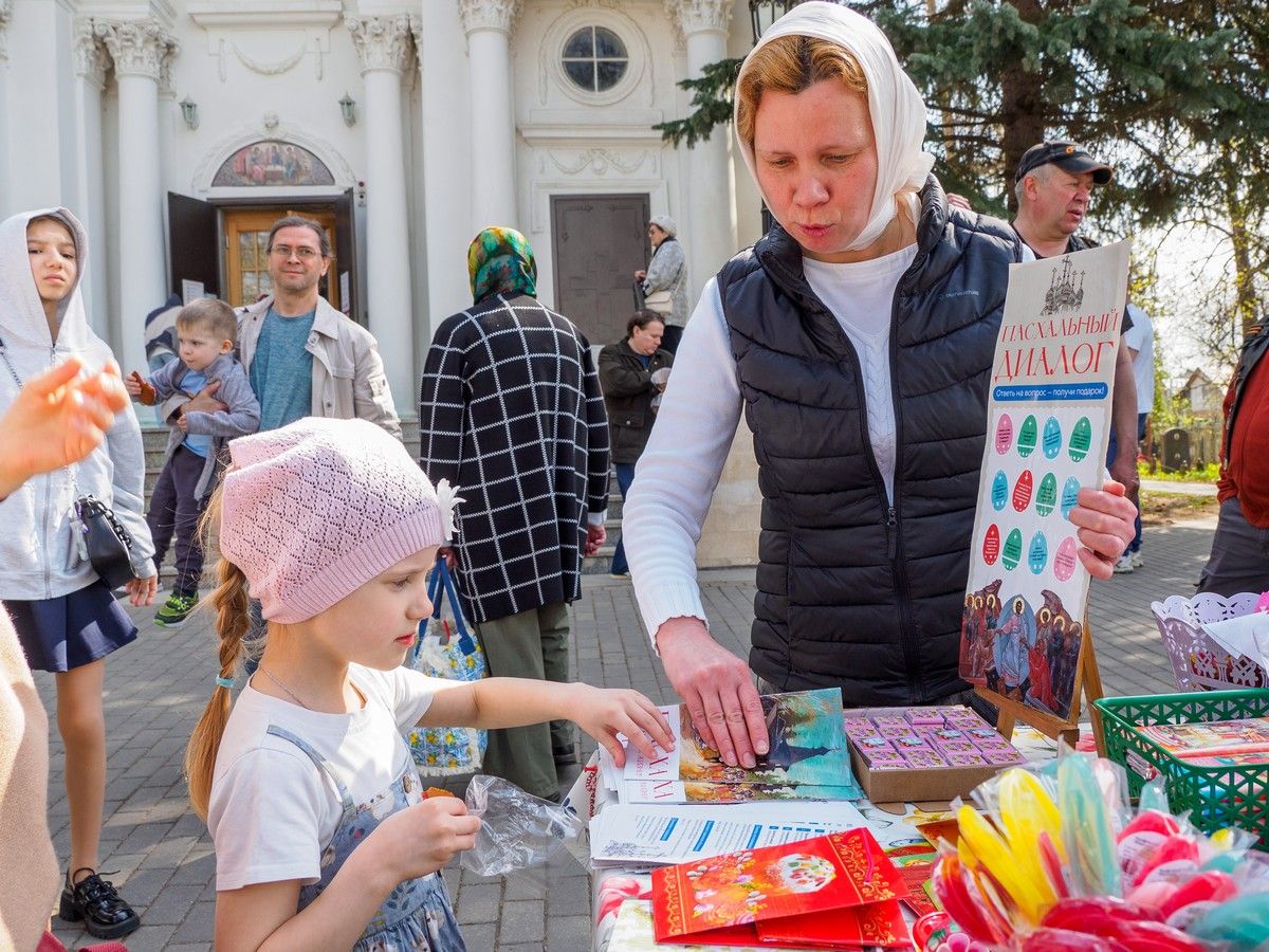 Был обустроен интерактивный стенд, состоялось общение о смысле праздника Воскресения Христова с приходящими освятить куличи и яйца, добровольцы раздавали просветительские буклеты и отвечали на вопросы.