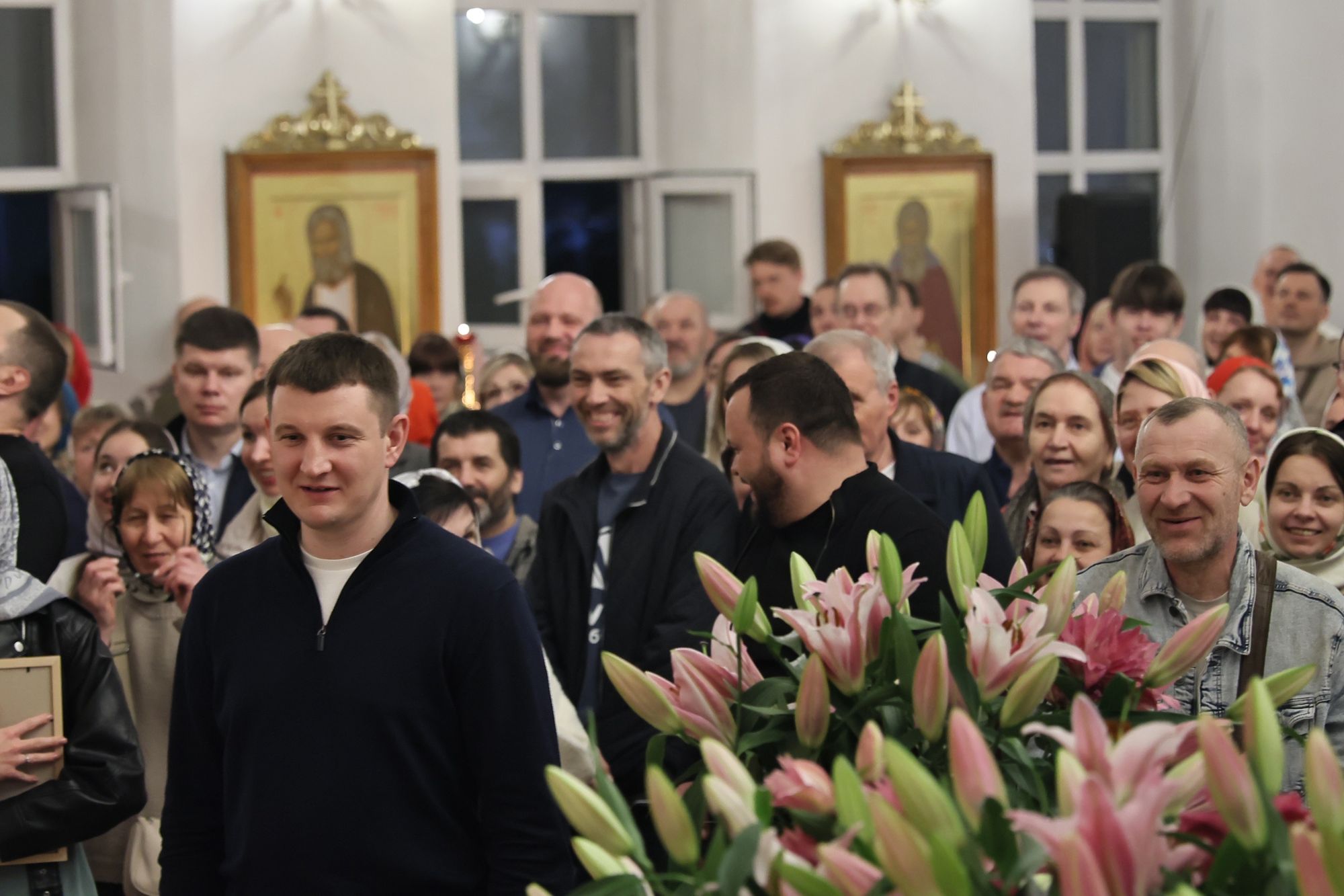 По окончании Литургии отец благочинный обратился к участникам богослужения с поздравлением.