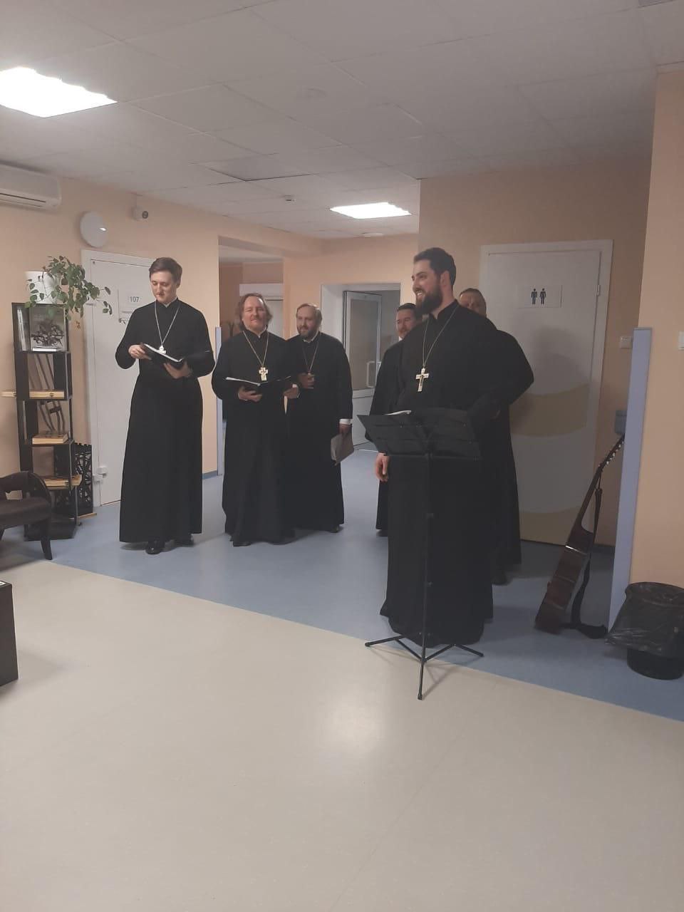 Хор духовенства исполнил пасхальные, духовные и военно-патриотические песнопения. В завершение встречи священнослужители вручили пациентам и медицинским сотрудникам центра пасхальные подарки.