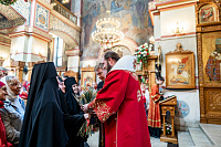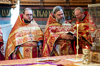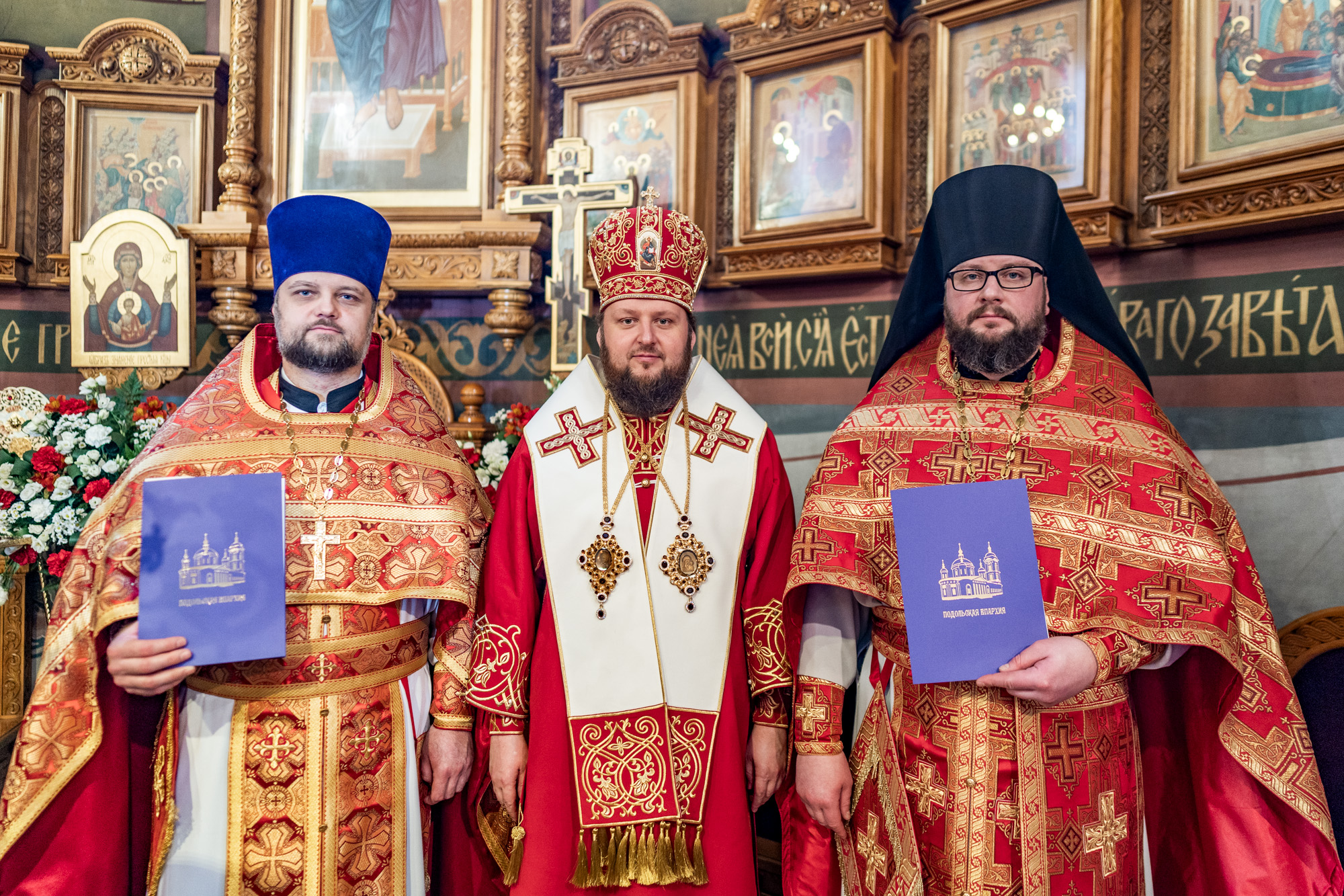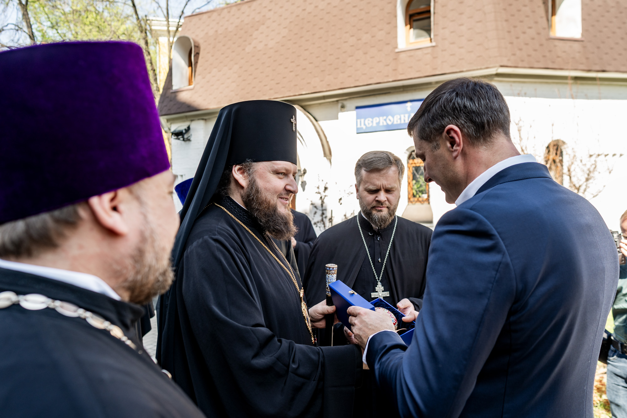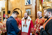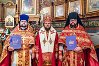 За богослужением архиепископ Аксий вручил богослужебно-иерархические награды духовенству. Палицей были награждены иерей Константин Семёнов и заведующий канцелярией Подольского епархиального управления иеромонах Сергий (Александров).
