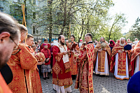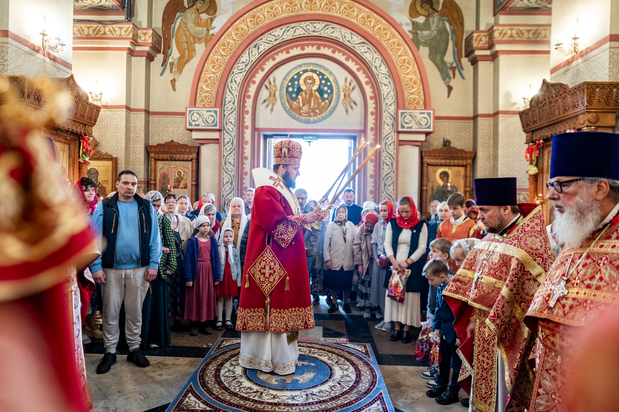 В конце Божественной литургии был совершён пасхальный крестный ход, а затем владыка обратился к молящимся с архипастырским словом.