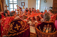 Божественную литургию возглавил благочинный Сергиево‑Посадского церковного округа игумен Иоанн (Самойлов). Ему сослужили клирики благочиния.