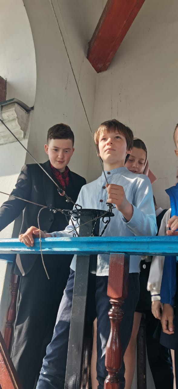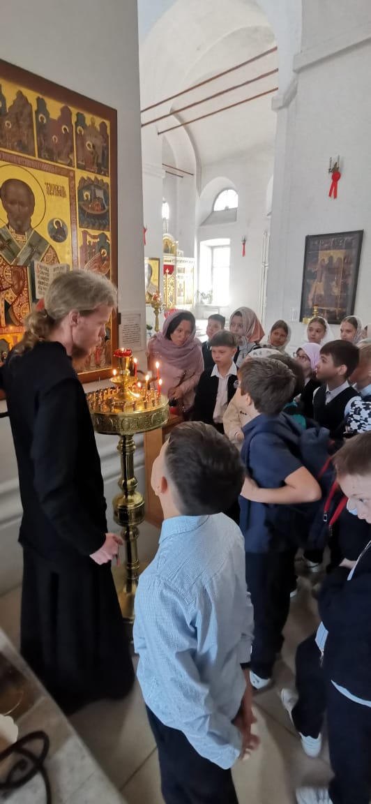 Клирик храма священник Димитрий Шаповалов провел ребятам экскурсию, рассказал об устройстве храма, иконах, празднике Пасхи и Христовом Воскресении. Затем учащиеся поднялись на колокольню, где позвонили в колокола. Закончилась экскурсия чаепитием.