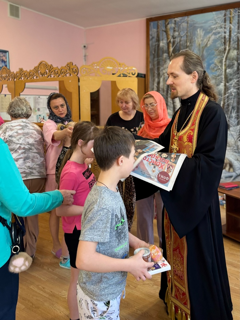 24 апреля 2025 года настоятель Крестовоздвиженского храма города Коломна иерей Иоанн Бакушкин посетил реабилитационный центр «Коломенский», где для прохождения реабилитации временно проживают дети-инвалиды и дети с ограниченными возможностями здоровья. Иерей Иоанн совершил Таинство Причастия детей и вручил им подарки. Родителям и сотрудникам была розданы пасхальные газеты и листовки.